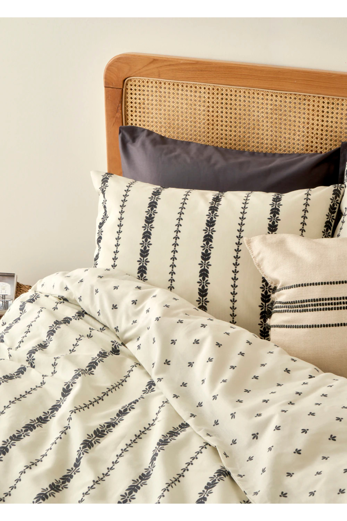 200x220 cm black and white printed 65% cotton 35% polyester Olven Double Duvet Cover Set.