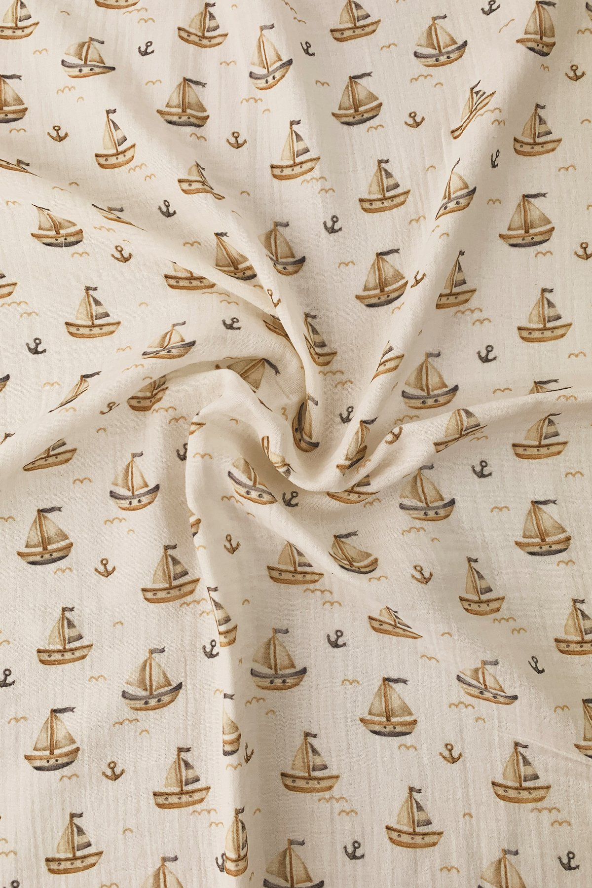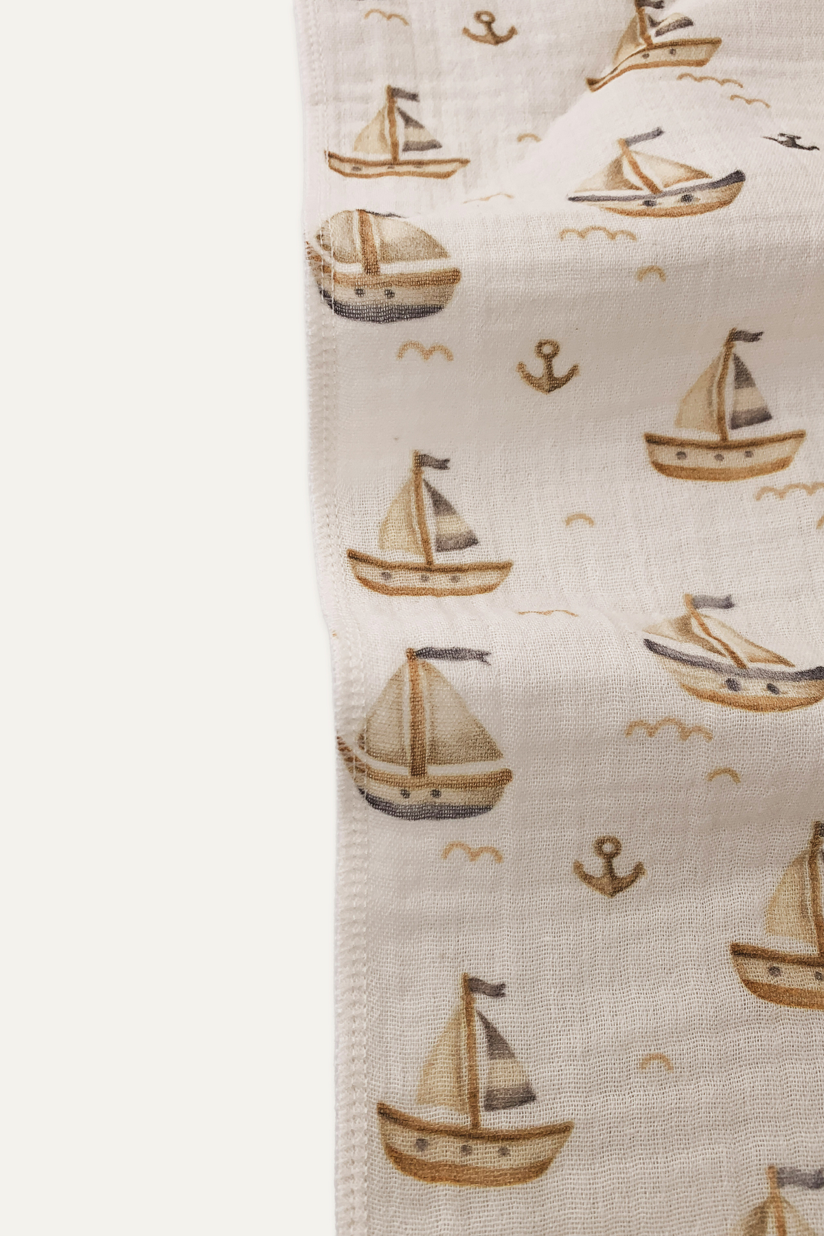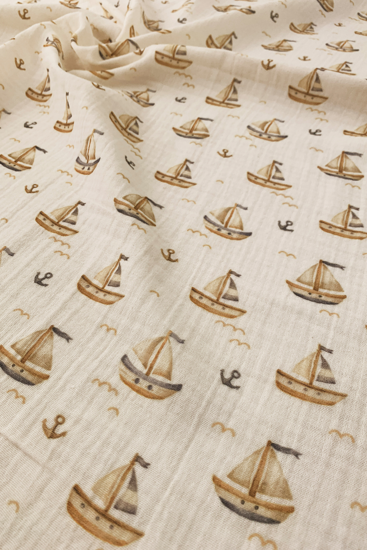 2-Layer Muslin Cover Sailing Boat Pattern - 100% Cotton - 75x95 cm