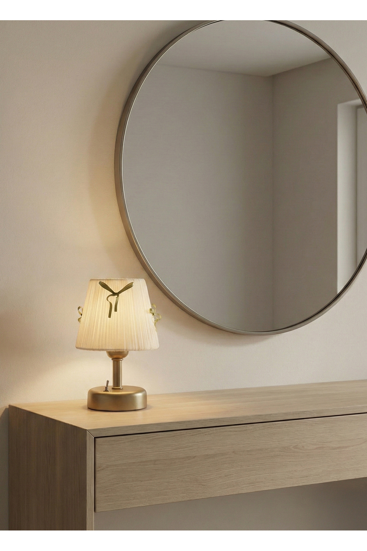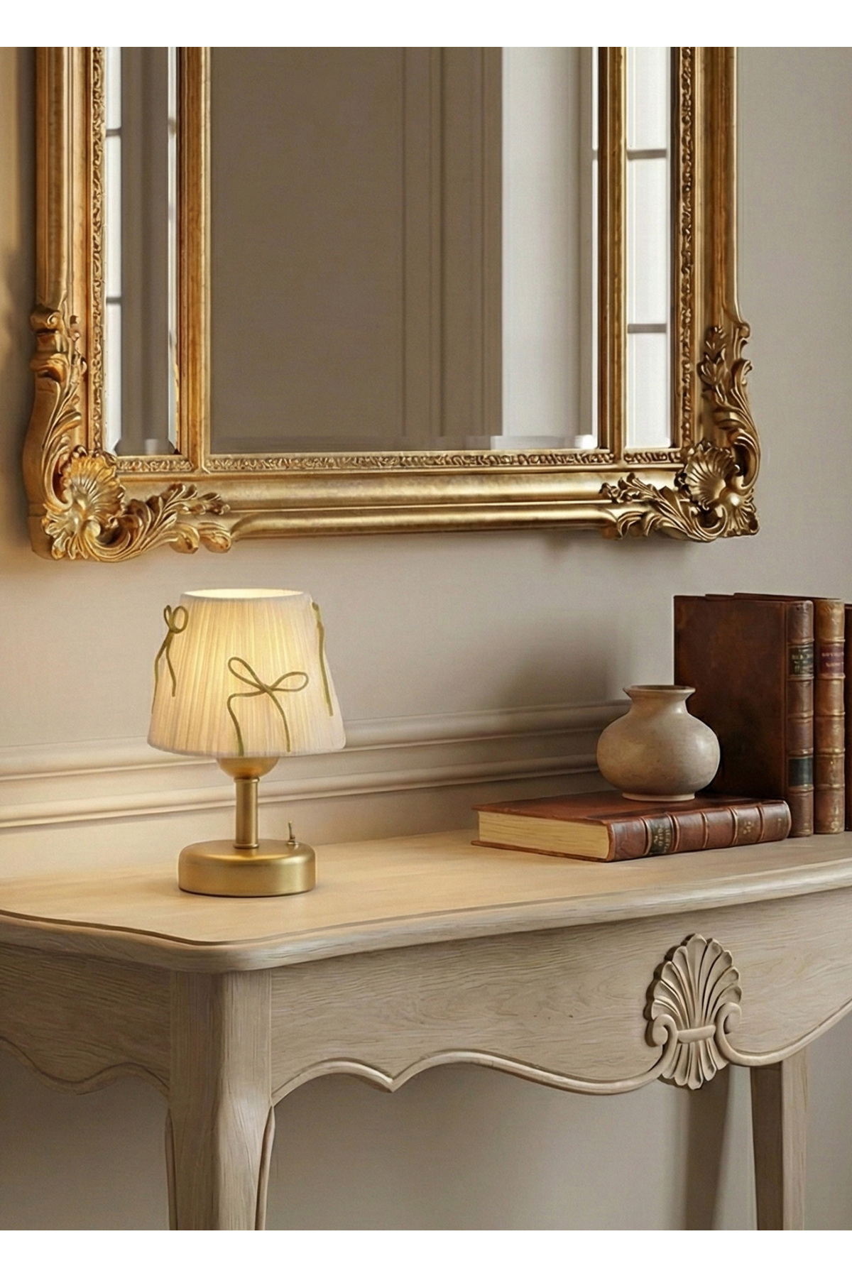 Maison Avf Cream Velvet Suede Gold Bowknot Ribbon Wireless Desk Lamp - Bottom Antique Gold | ByTR