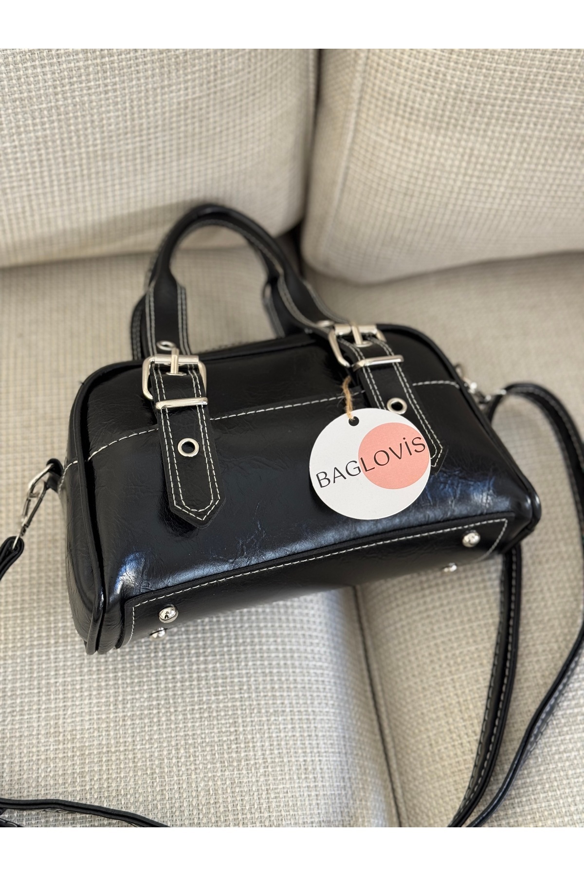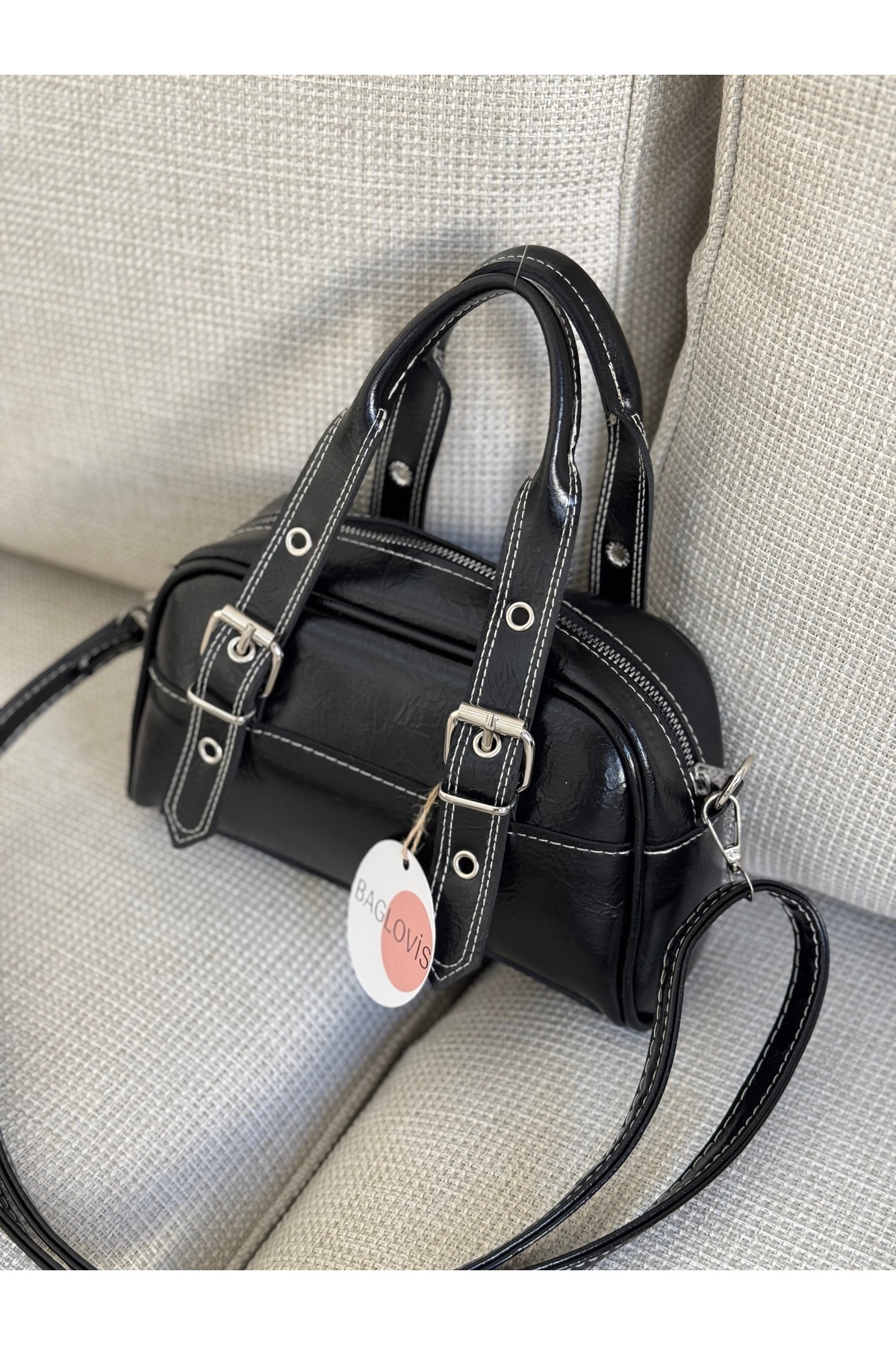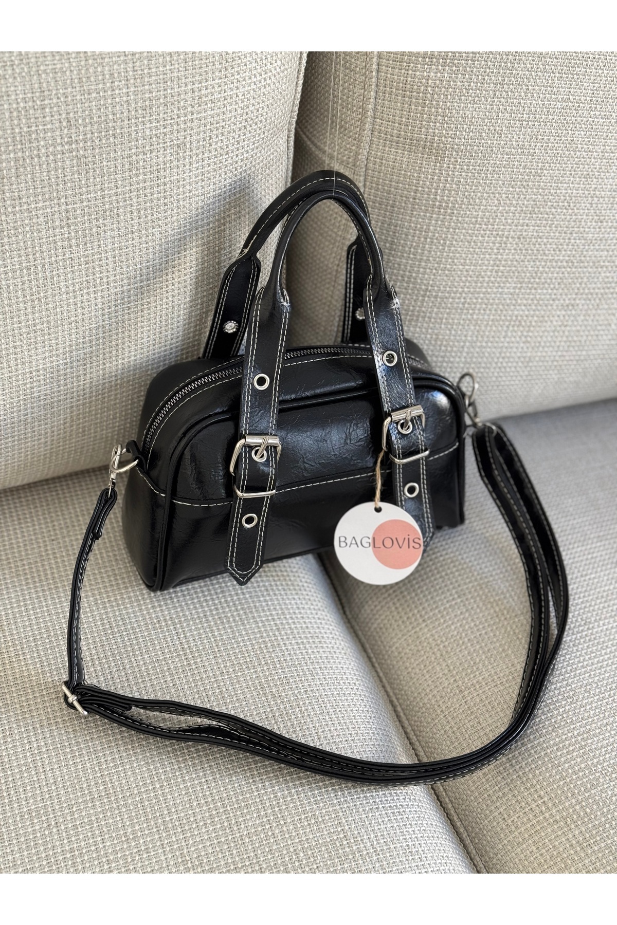 BAGLOVİS WOMEN'S BLACK SHOULDER BAG WITH ADJUSTABLE BUCKLE STRAPS Width25 Height15 | ByTR