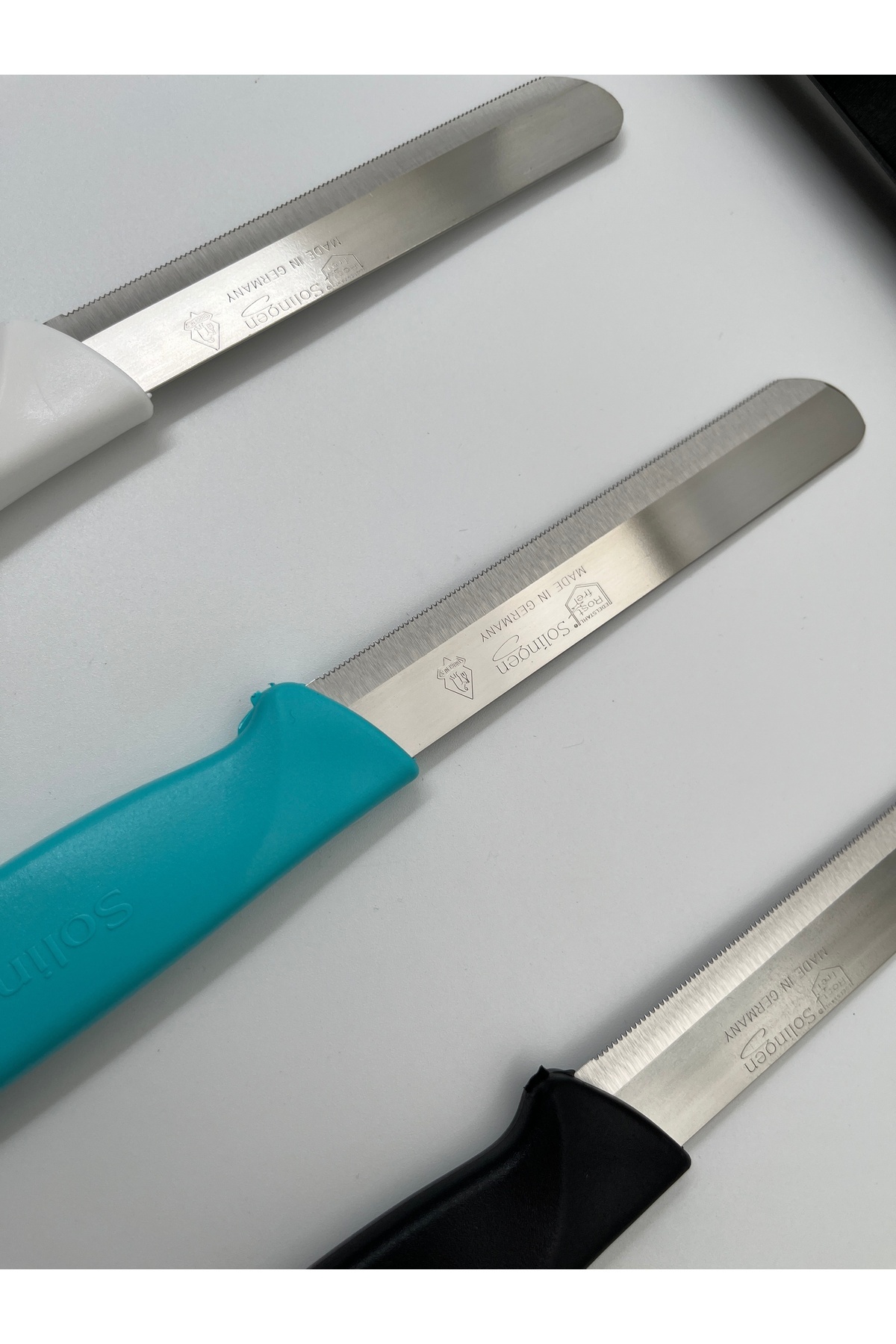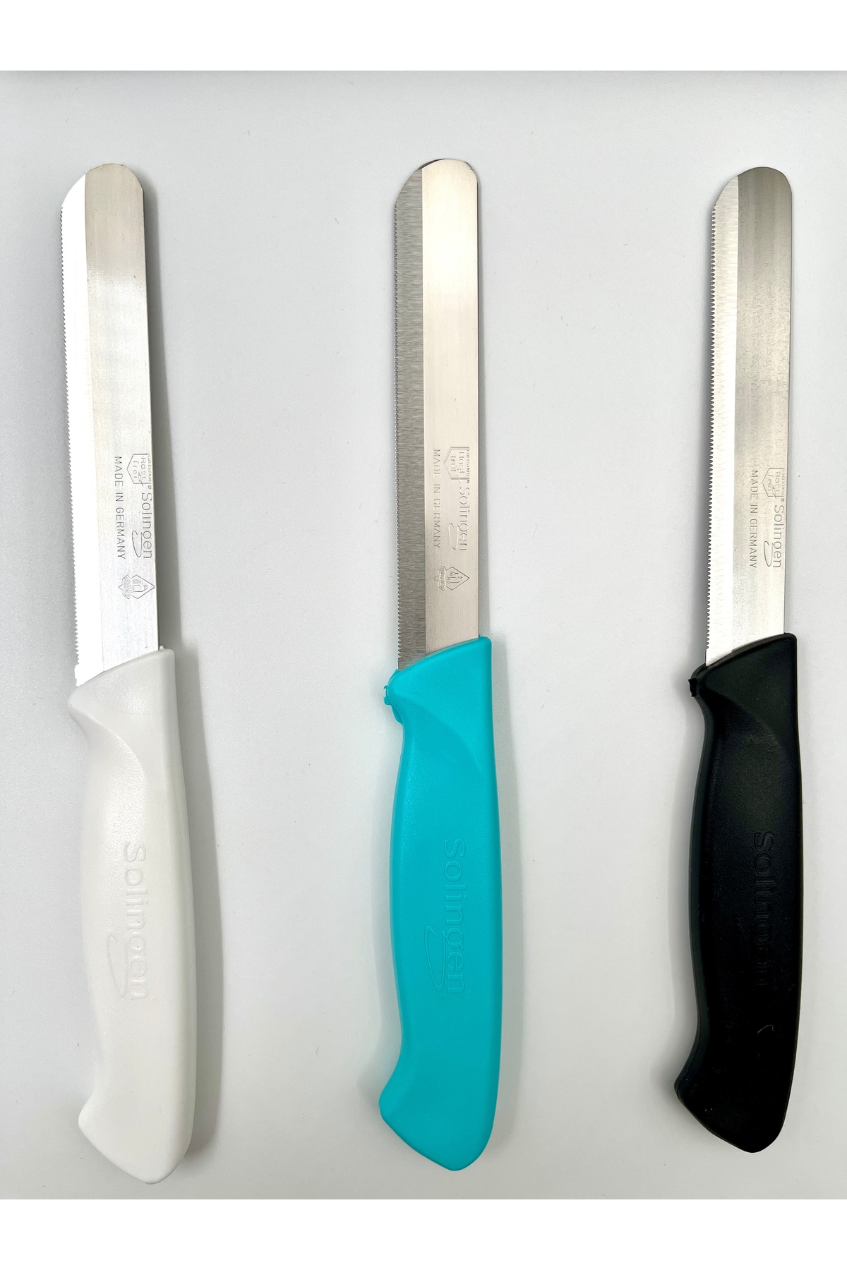 🔪 Product Features: • Brand: Solingen • Knife Type: Serrated Cut • Size: 22 cm (including handle) • Material: High quality stainless steel • Handle Colors: Turquoise, White, Yellow, Green, Red, Purple, Navy Blue, Black, Pink • Comfortable grip with ergonomic handle design • Long-lasting, does not lose its sharpness easily ✨ Uses: Superior performance in bread, tomatoes, vegetables, fruits and all kitchen works.