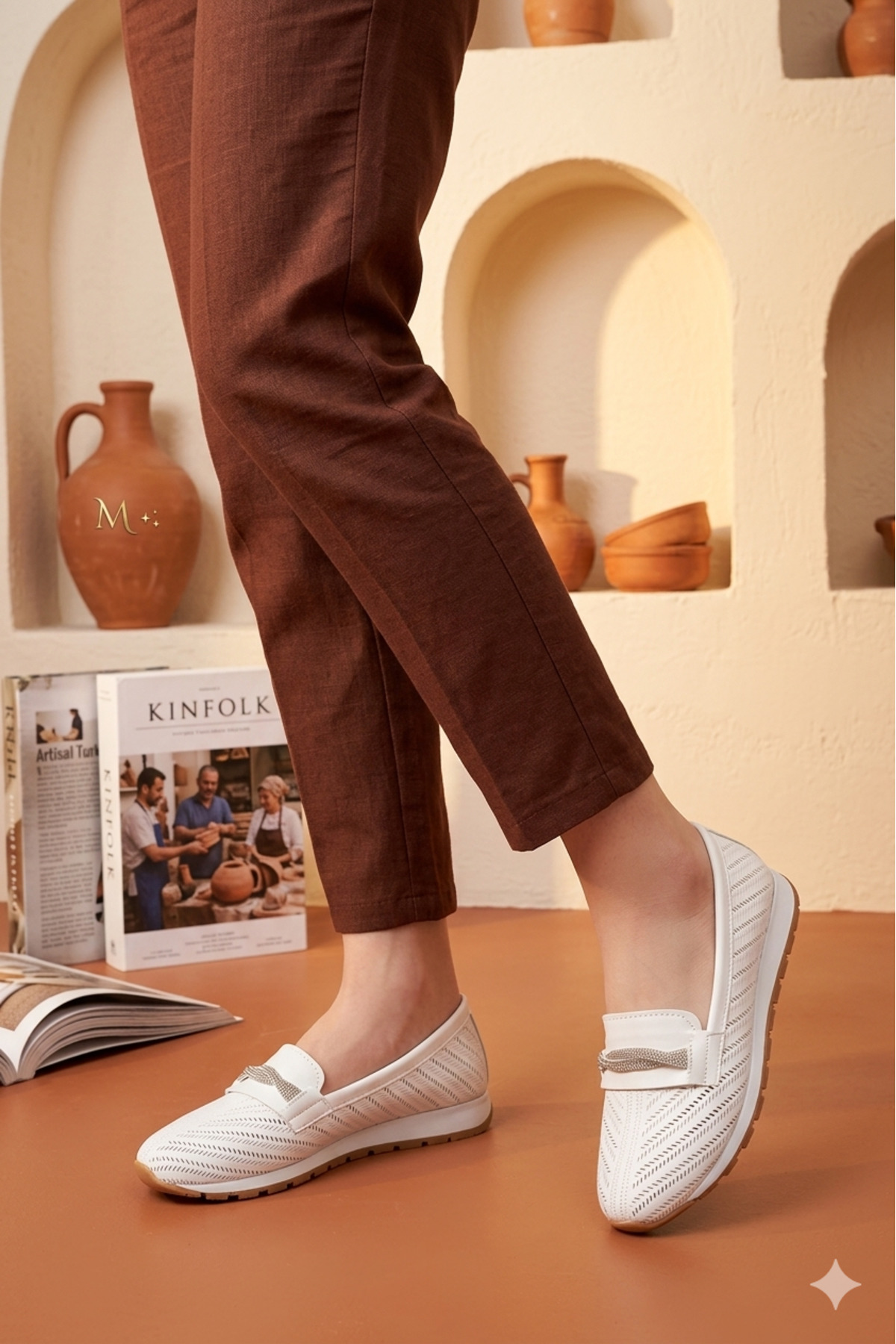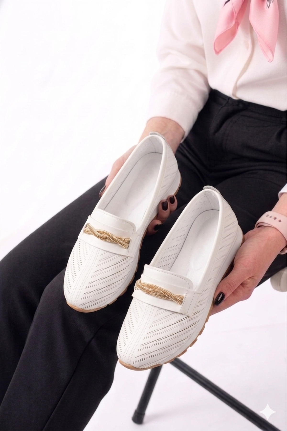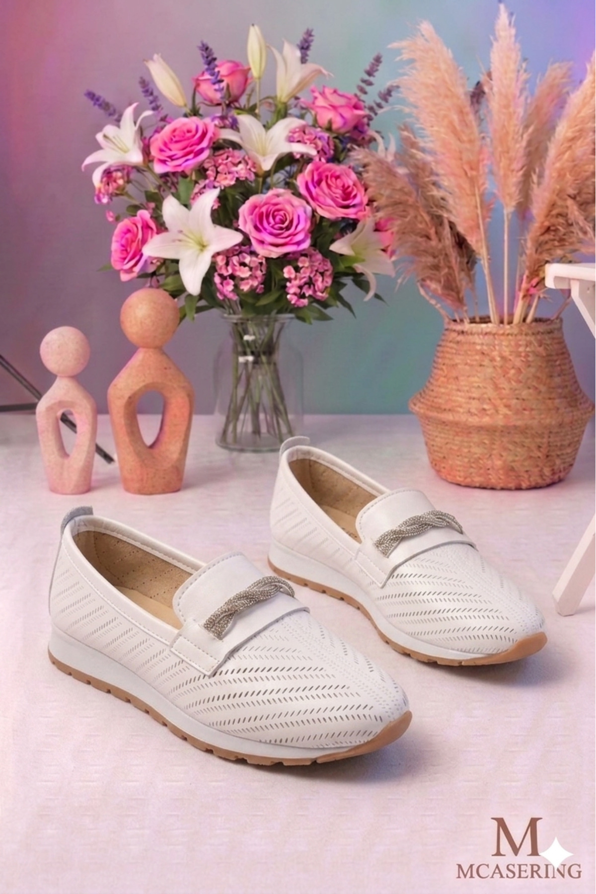 Attracting attention with its ultra-luxurious design, these flat shoes are ideal for daily use.