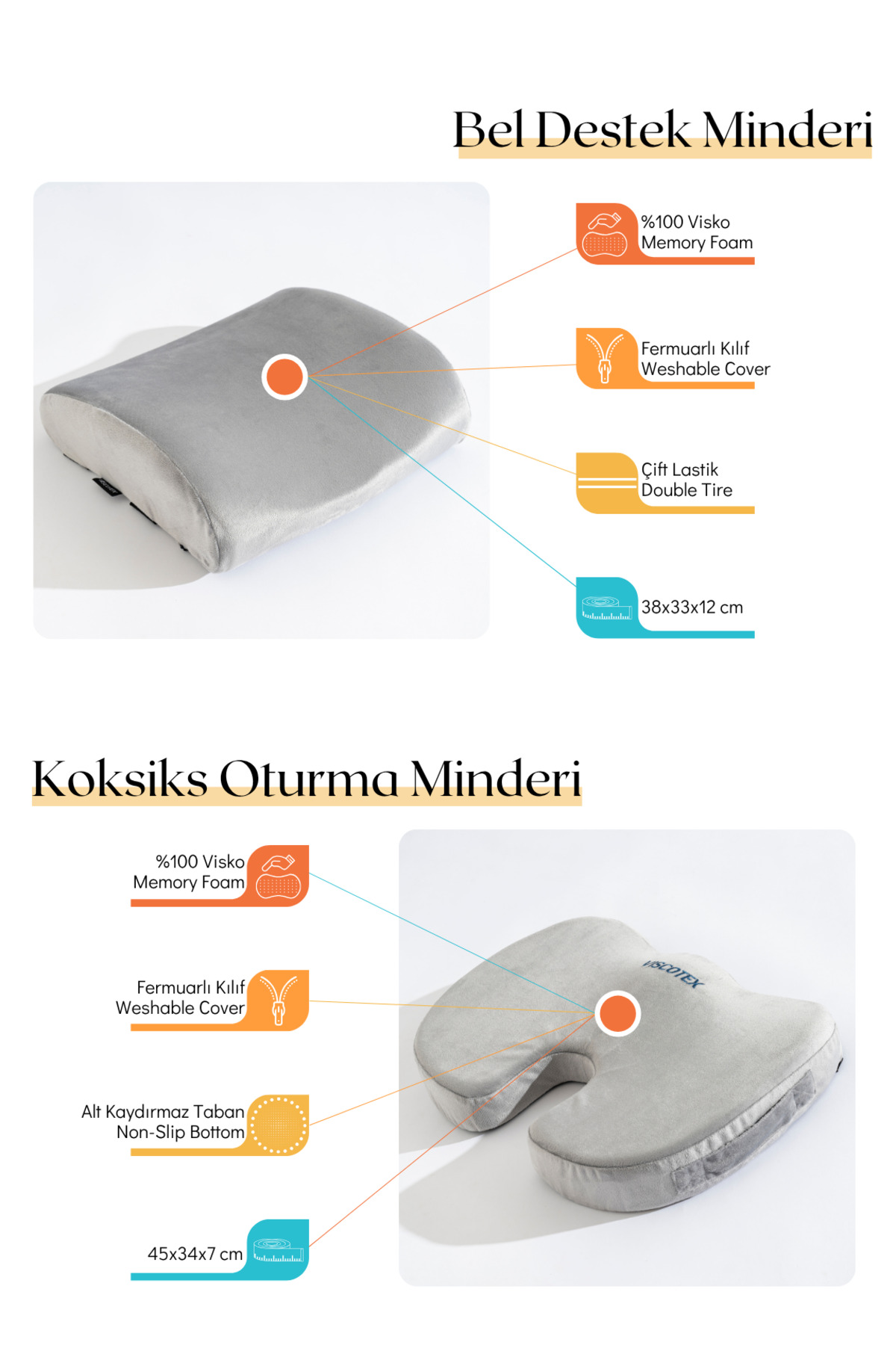 VİSCOTEX Visco Orthopedic Seating and Waist Support Cushion Set, Back Cushion and Coccyx Cushion | ByTR
