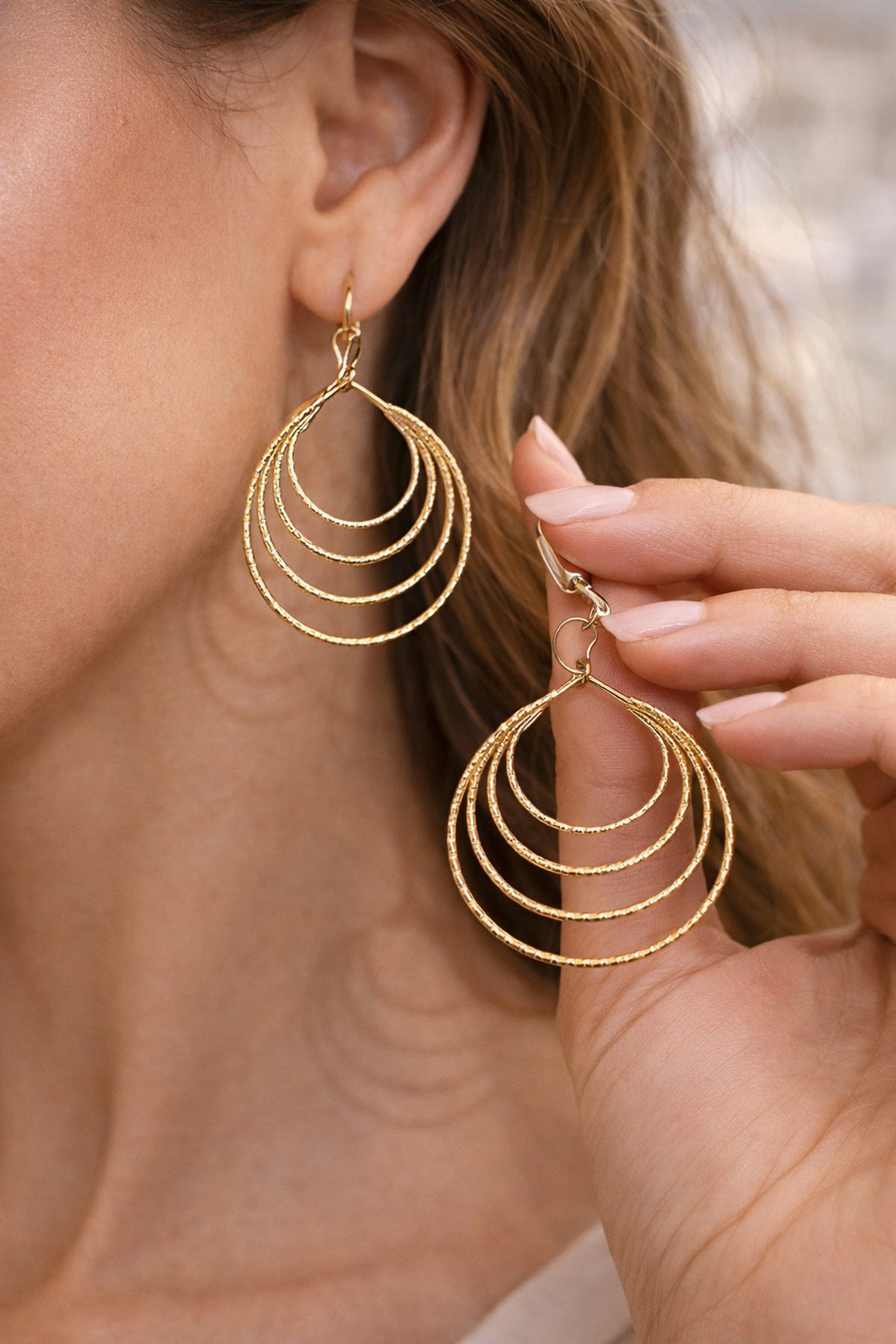 The steel women's earrings set, which offers an elegant look with its gold color, is ideal for daily use.