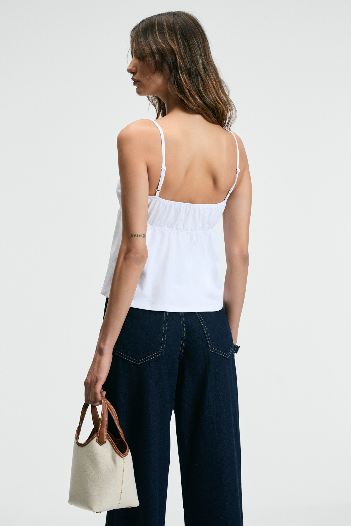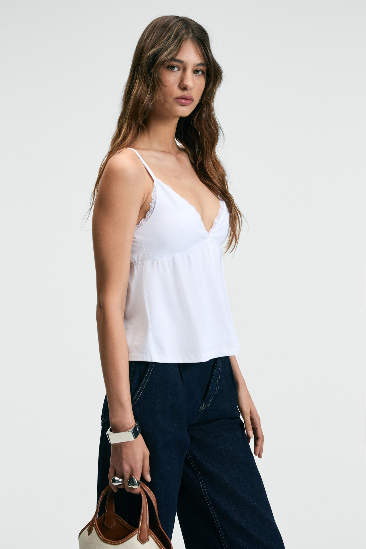 Clarvia Women's White Blouse with Triangle Chest Cupped Lace Detail Adjustment Strap