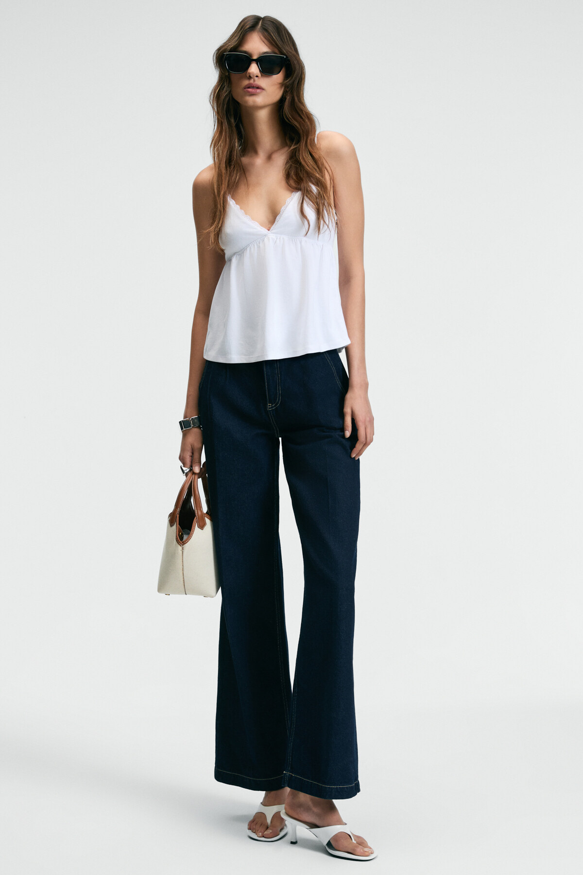GRIMELANGE Clarvia Women's White Blouse with Triangle Chest Cupped Lace Detail Adjustment Strap | ByTR