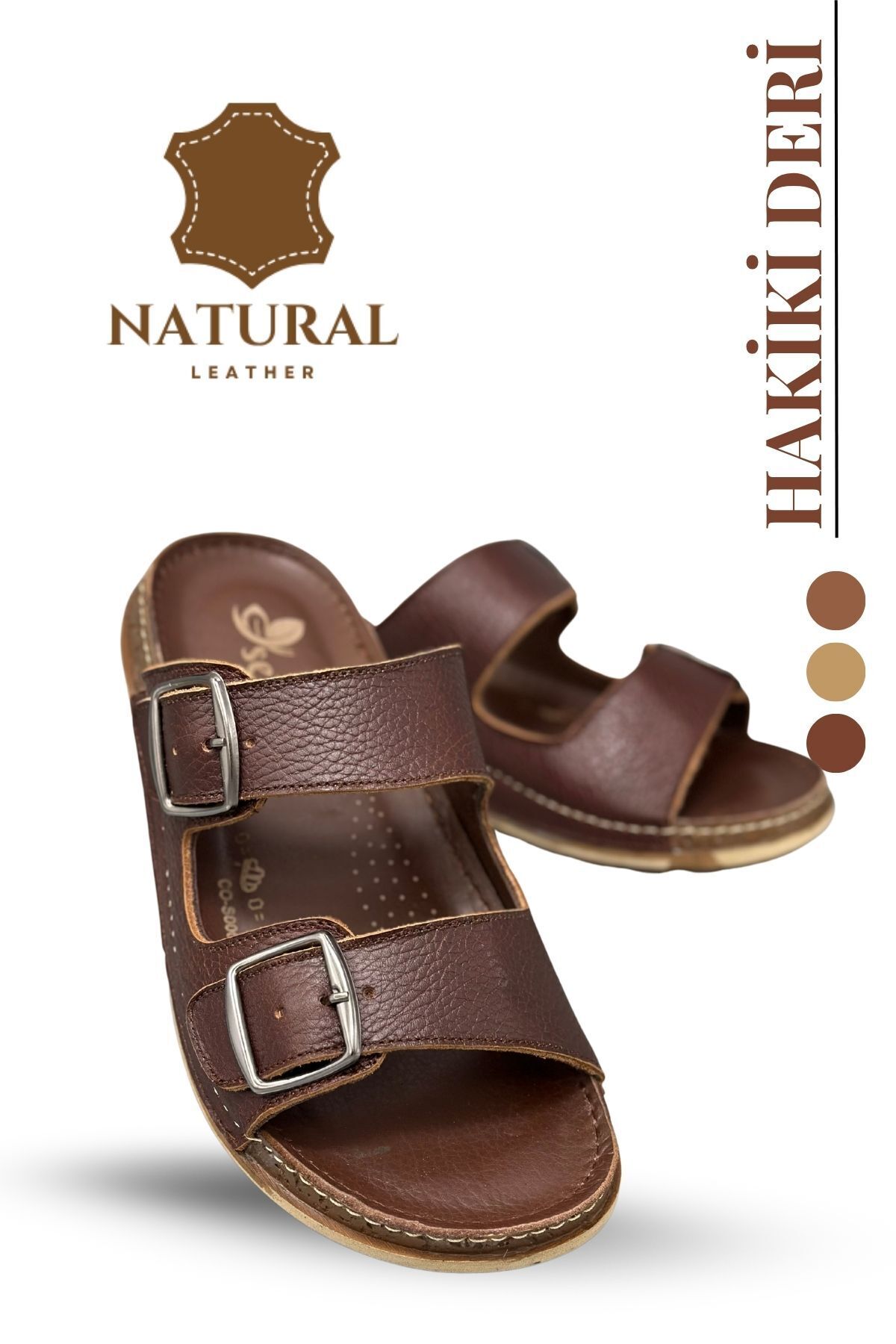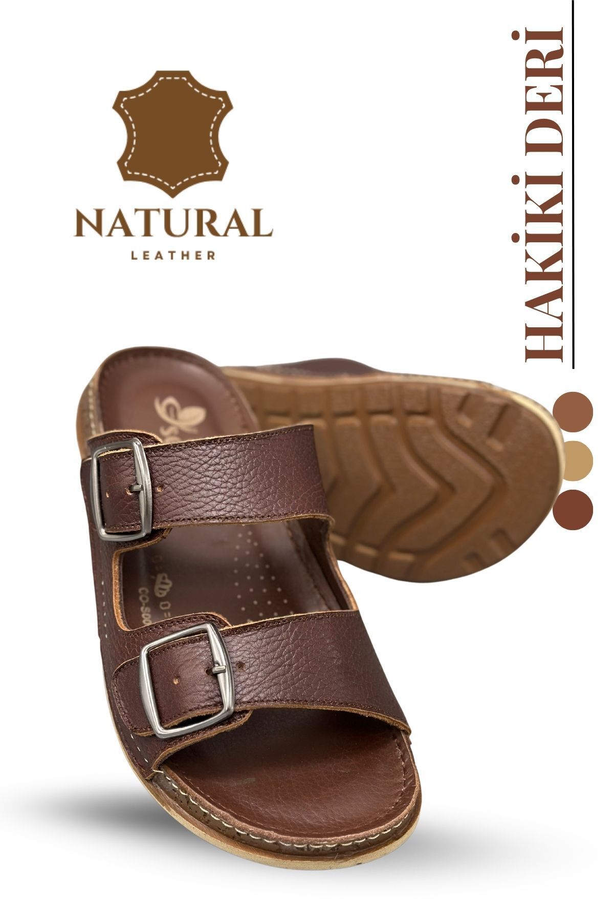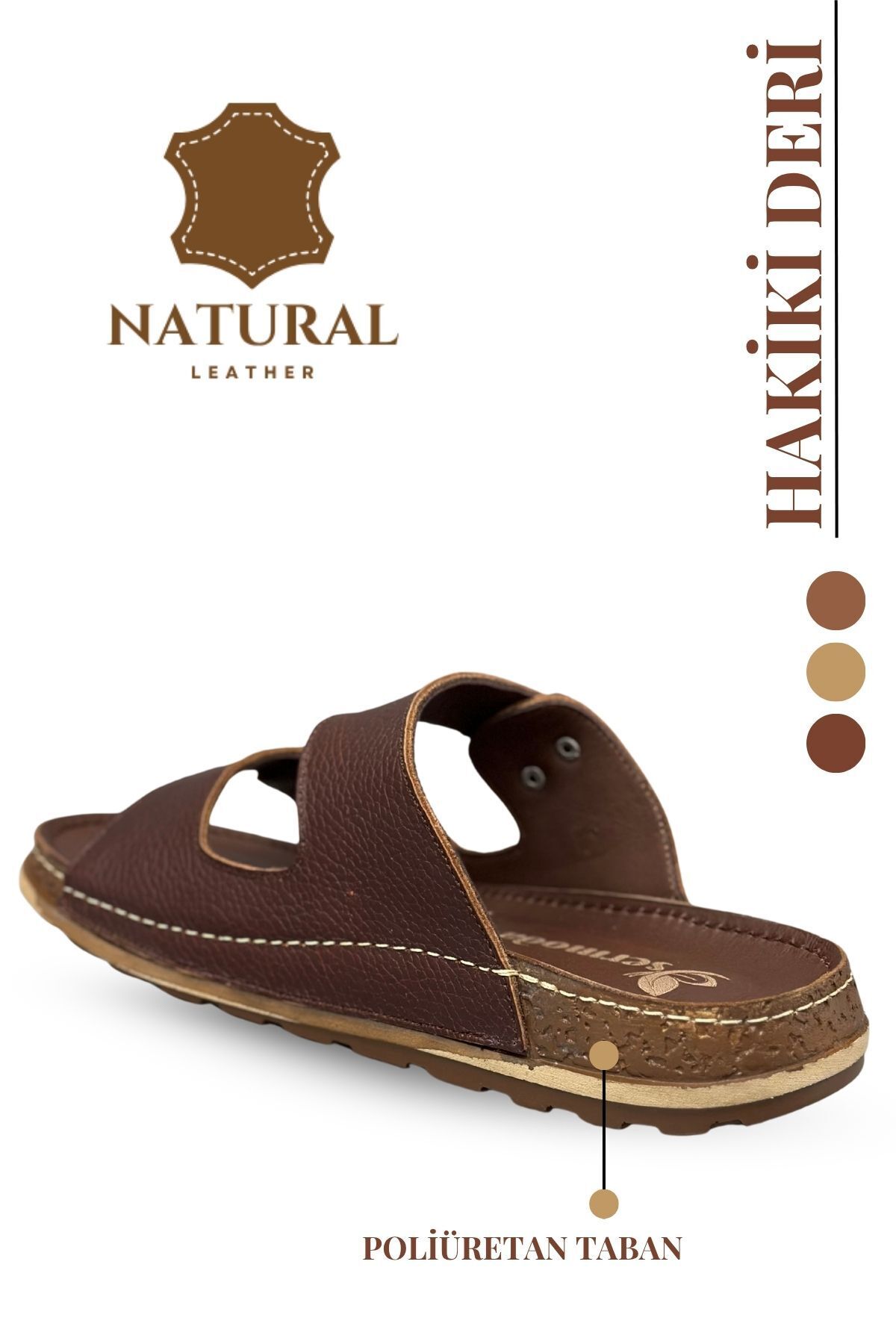 sermoda Genuine Leather Men's Slippers Natural Leather Slippers T Coffee | ByTR