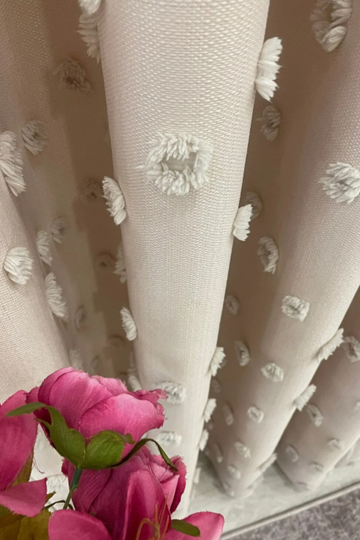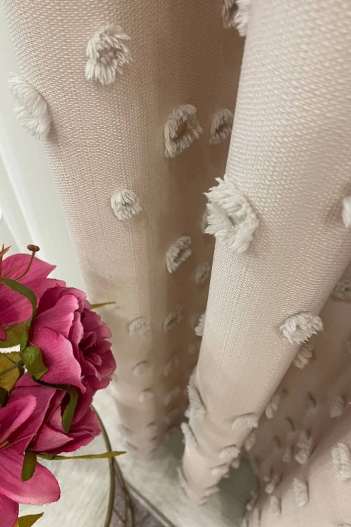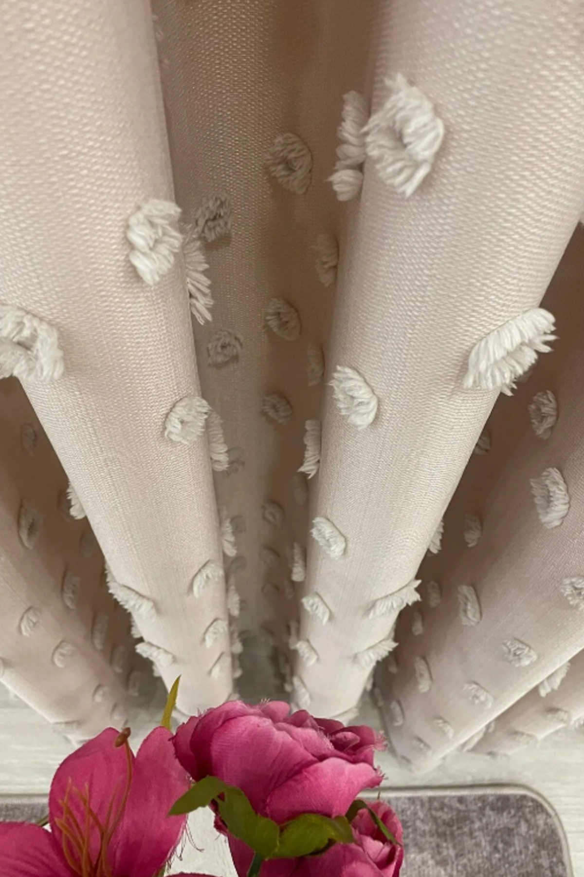 Perde Pendik Background Curtain Beige Puffy Tasseled, Pompom, Curtain Tight Pleated Linen Board Background Single Wing | ByTR