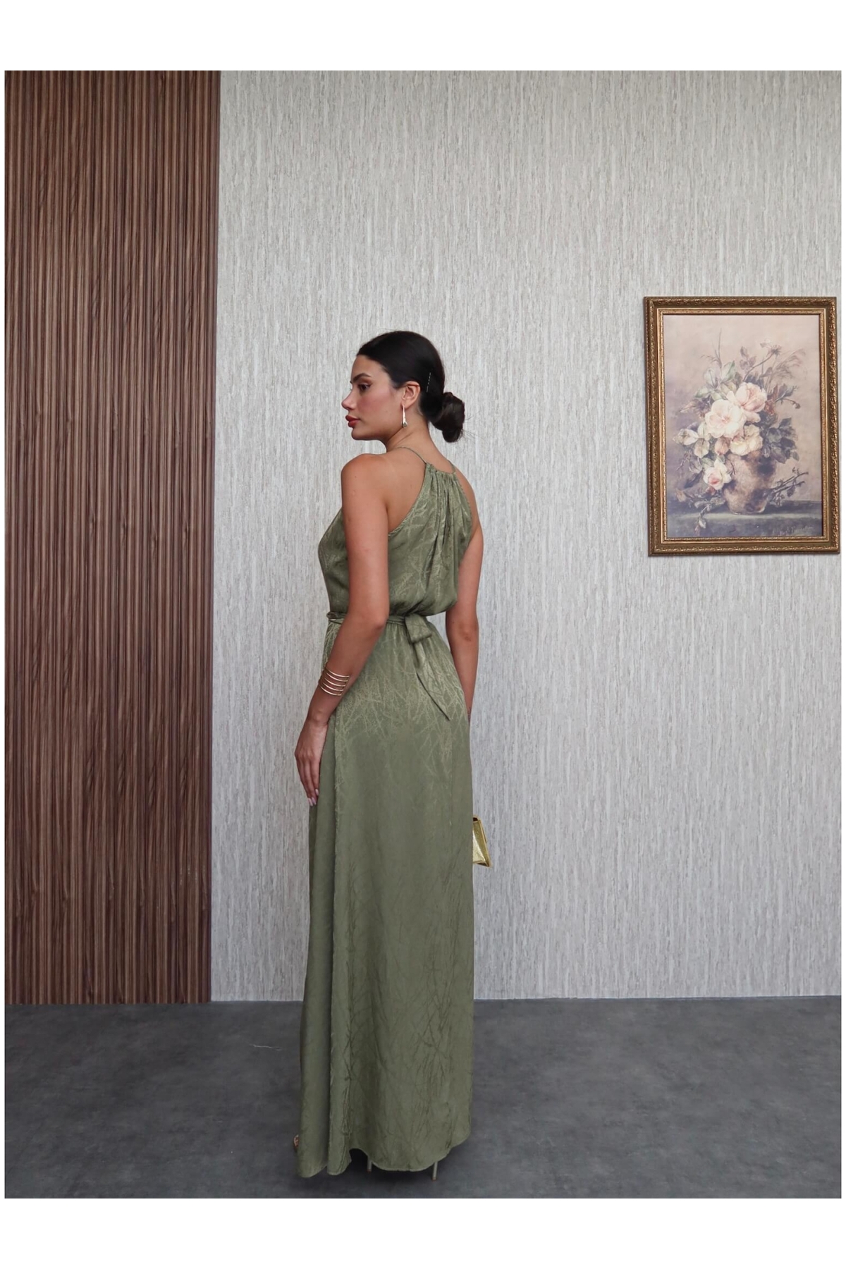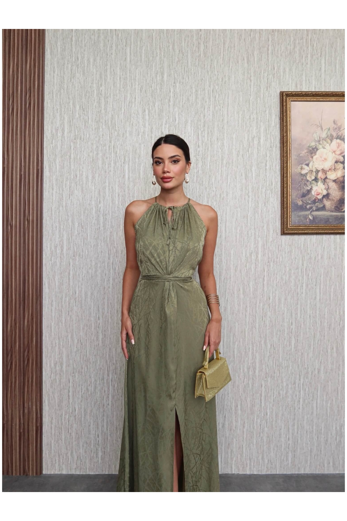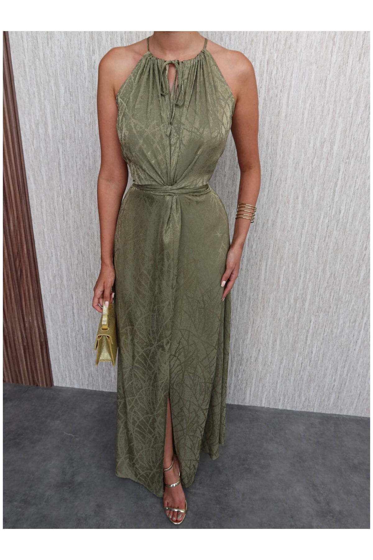 Khaki Belted Slit Dress
