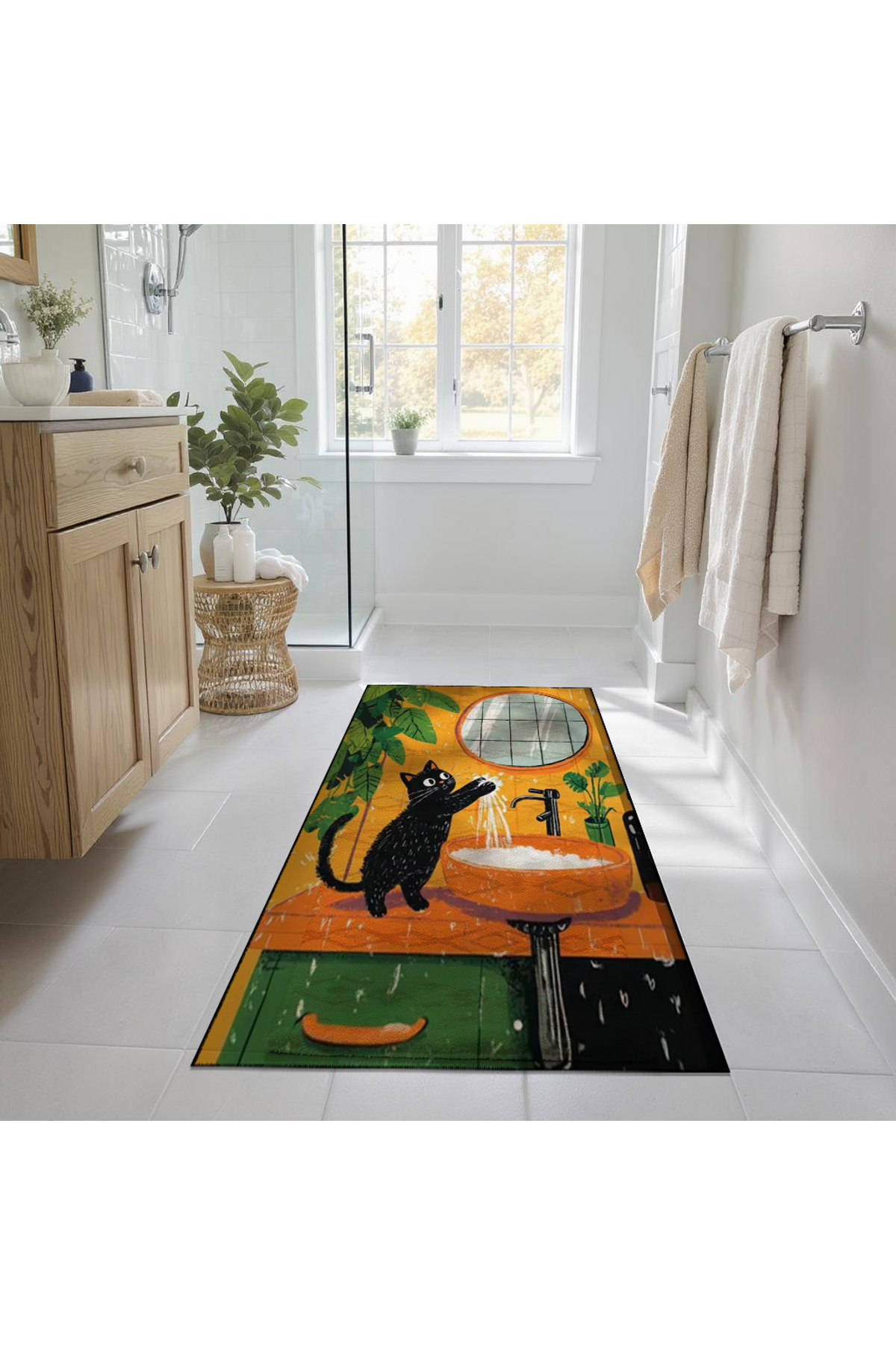 Rugs Modern Halı Northern Collection Baby Black Cat Washing Hands Detailed Woven Sole Decorative Carpet north51 | ByTR