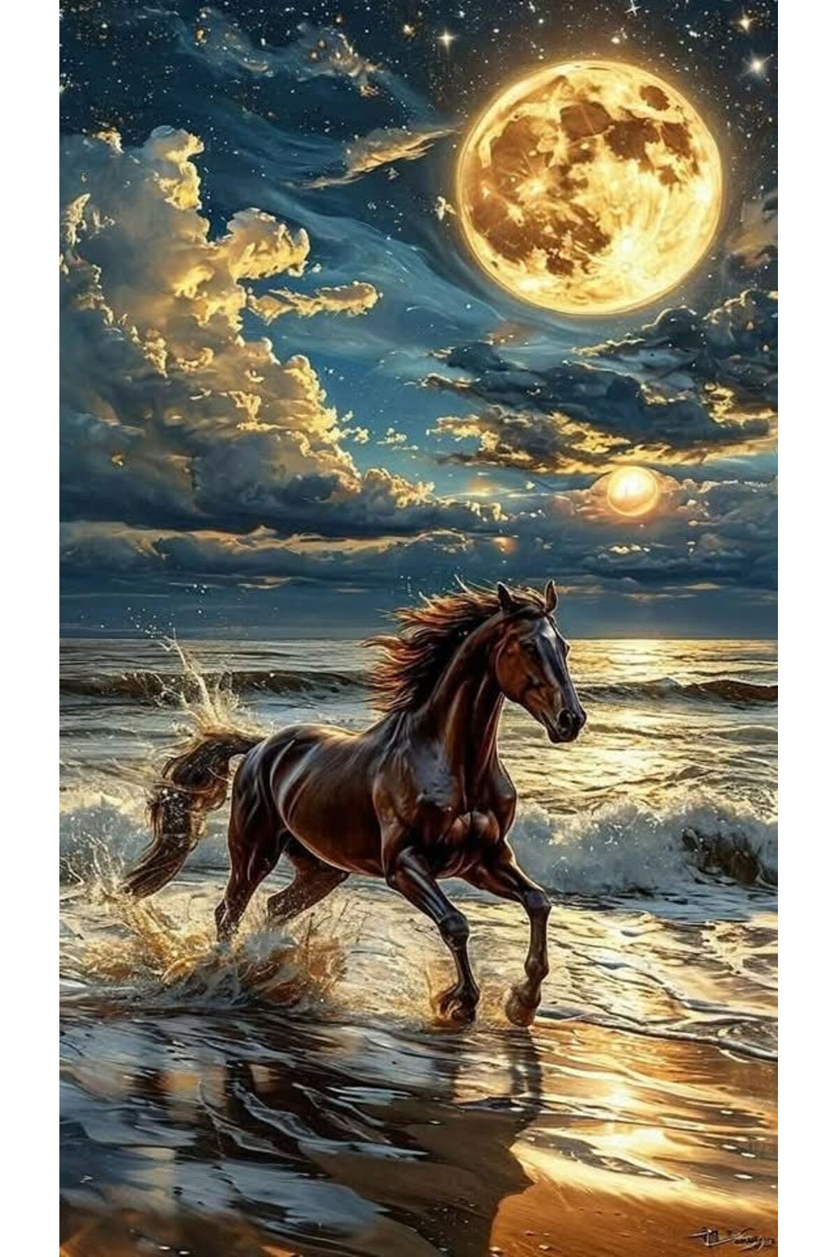 özkacar MOON VIEW SEA RUNNING HORSE CANVAS PAINTING HOME WALL LIVING ROOM OFFICE SHOP GIFT DECORATION ORNAMENT | ByTR