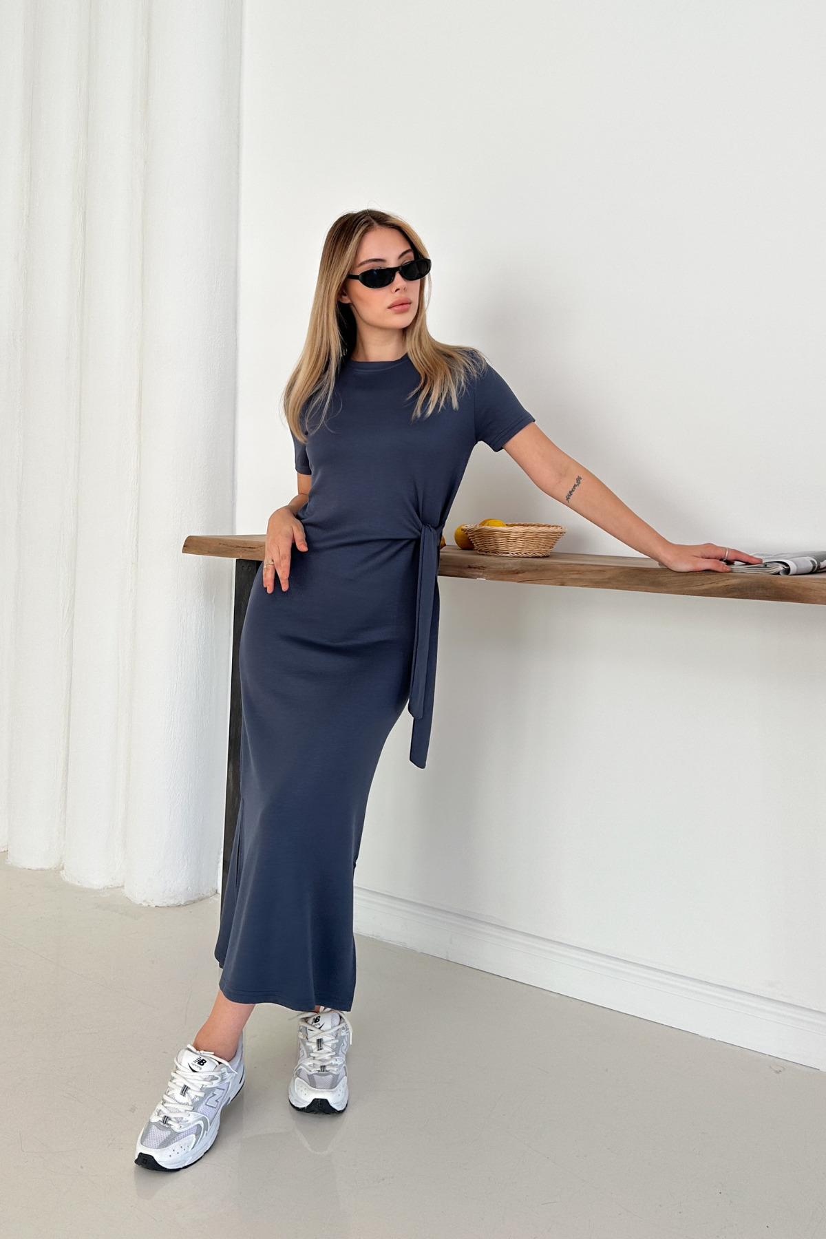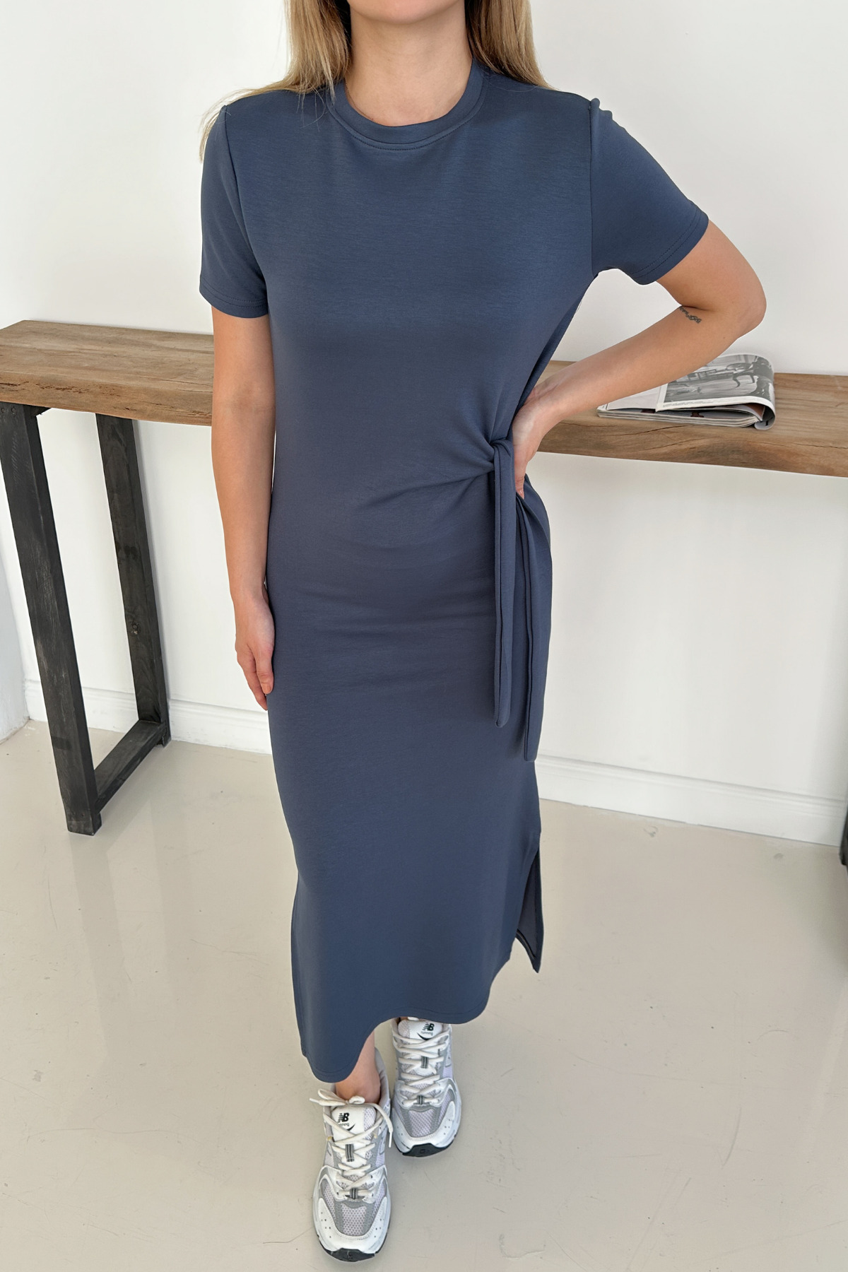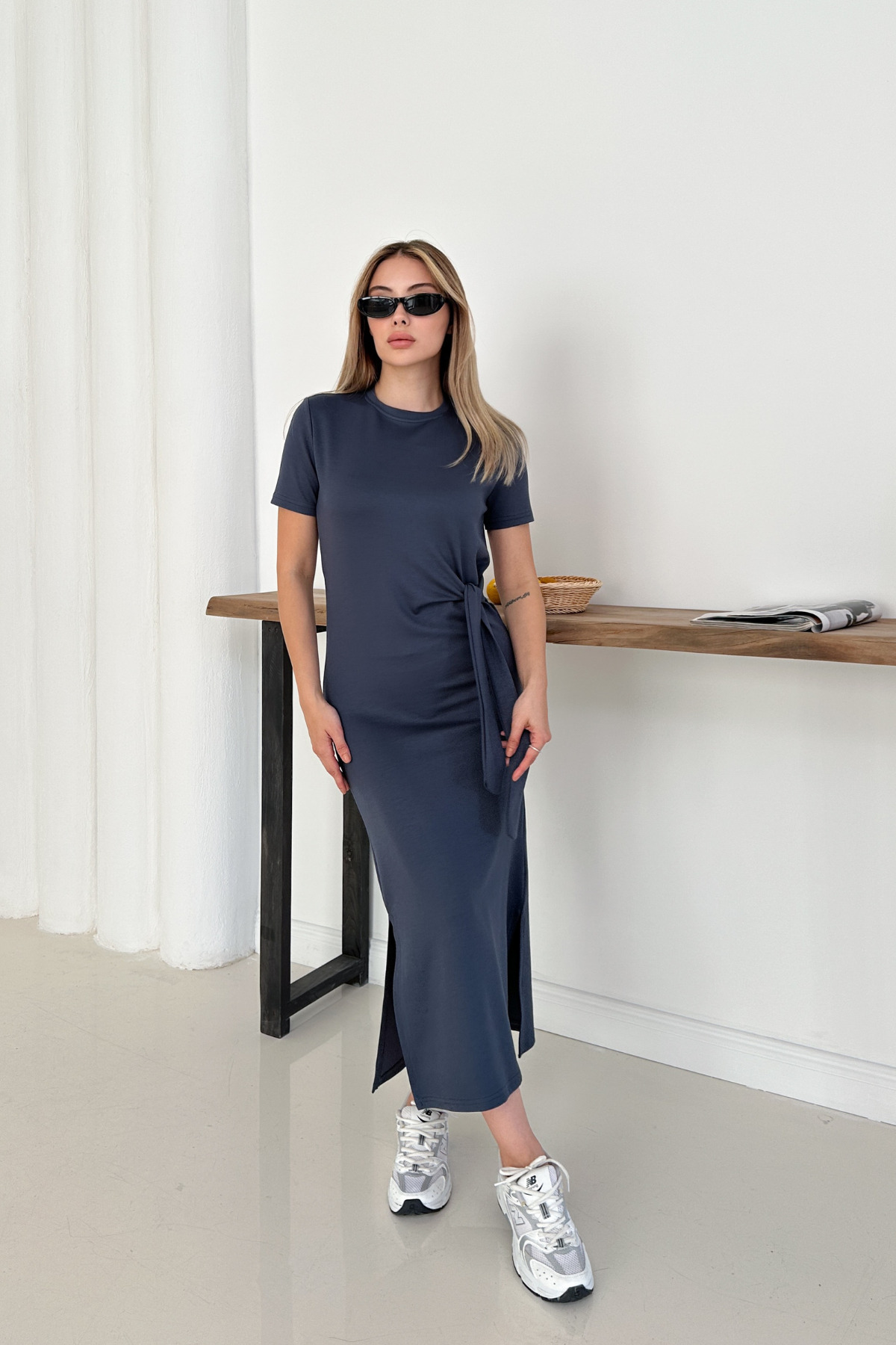 MİROR Women's Anthracite Modal Fabric Side Binding Detail Slit Dress | ByTR