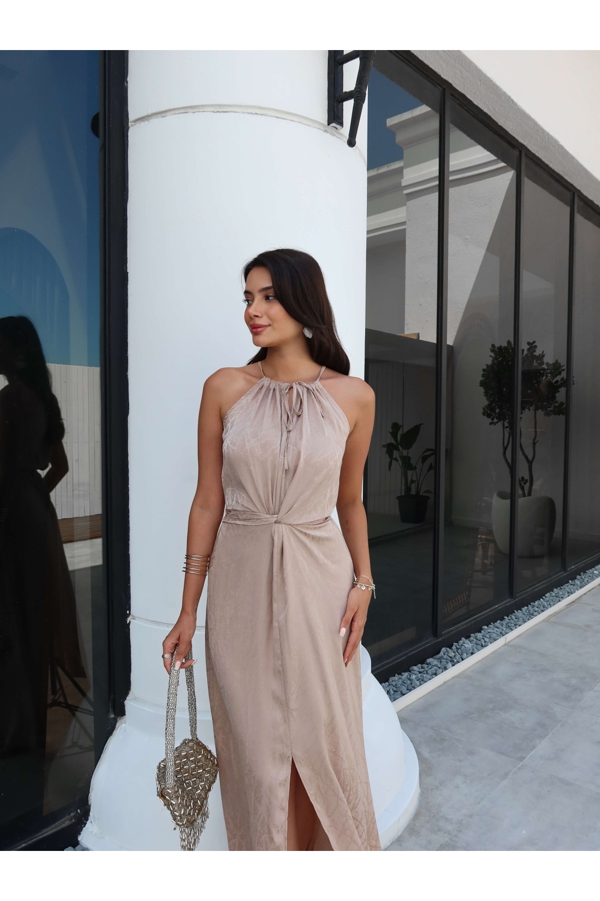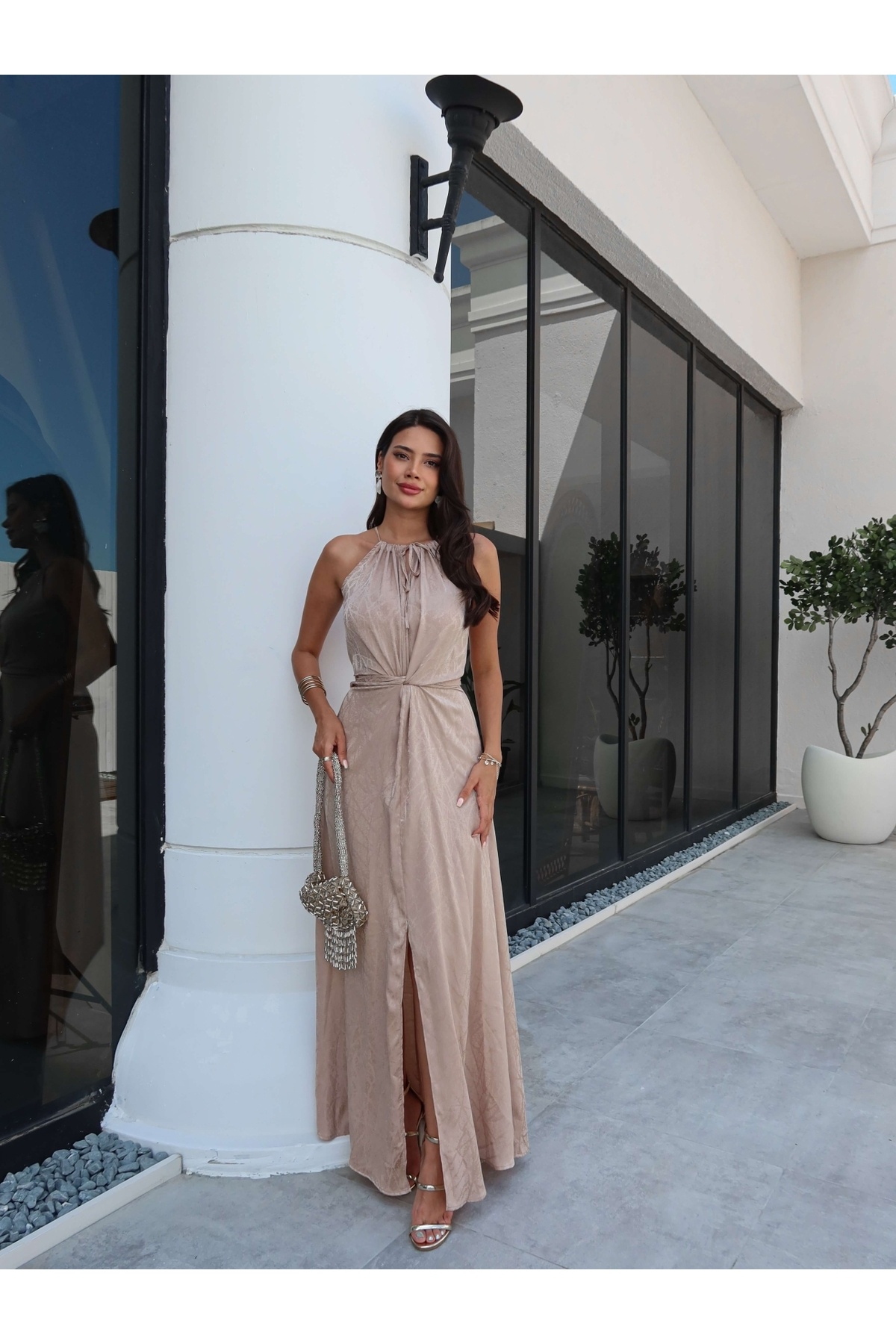 ESRAHELVACI Beige Belted Slit Dress | ByTR
