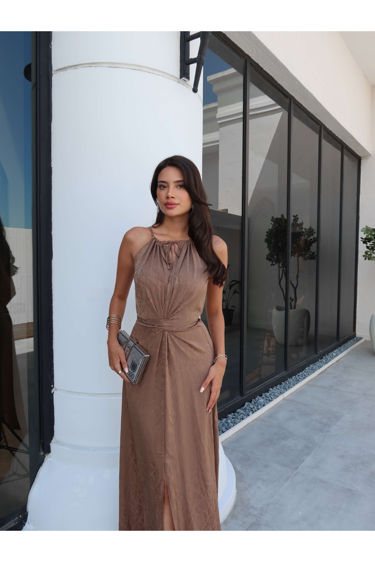 ESRAHELVACI Mink Waist Tie Slit Dress | ByTR