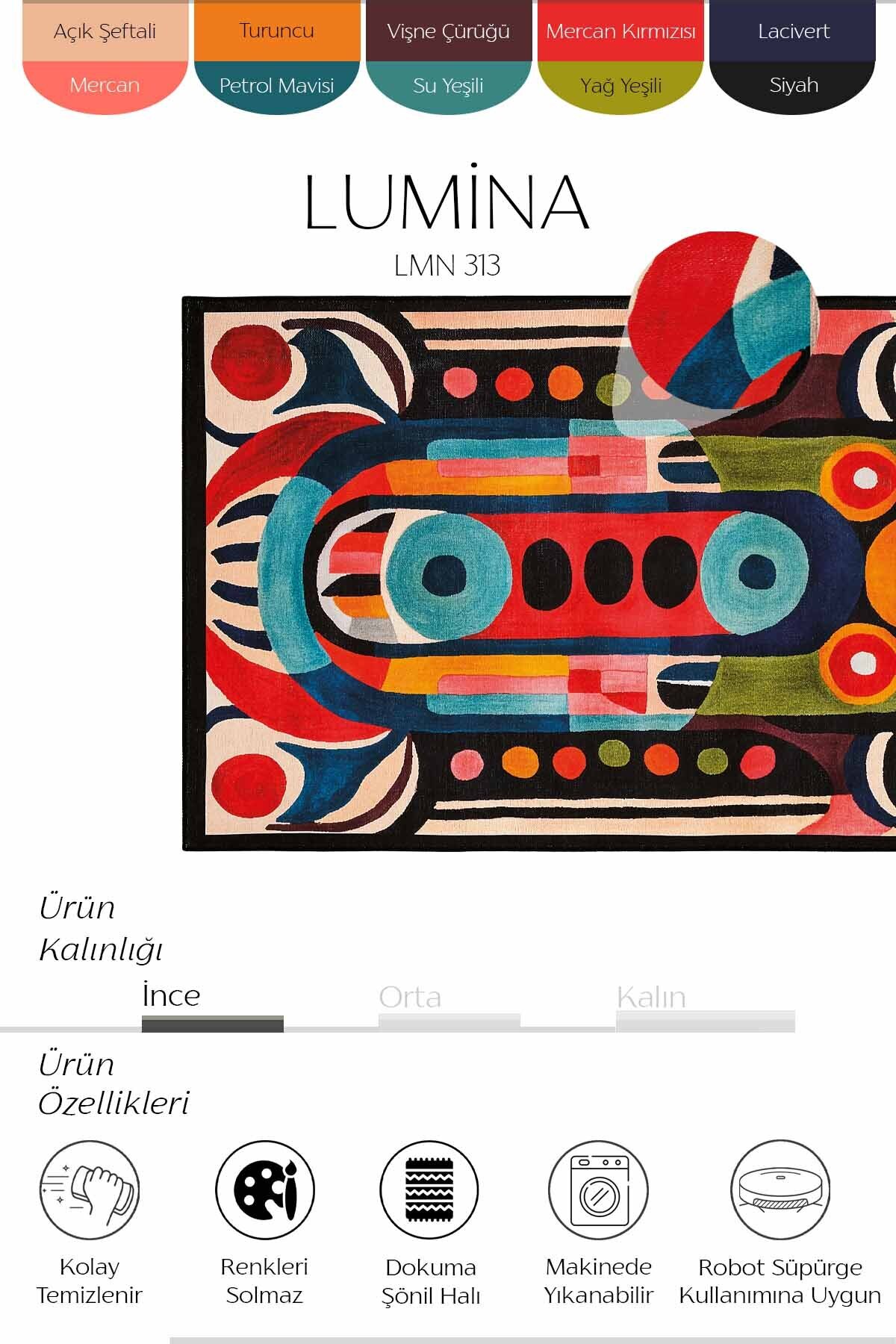 Instructions for WashingWhen your carpet needs deep cleaning, it can be washed in the washing machine, in a delicate program, at low speed, at a maximum of 30 degrees without squeezing. Heavy chemical cleaners (bleach, etc.) containing (caustic) should not be used during washing and the temperature of the washing water should not exceed 30 degrees. After cleaning, your carpet should be dried in a short time on the floor without hanging.