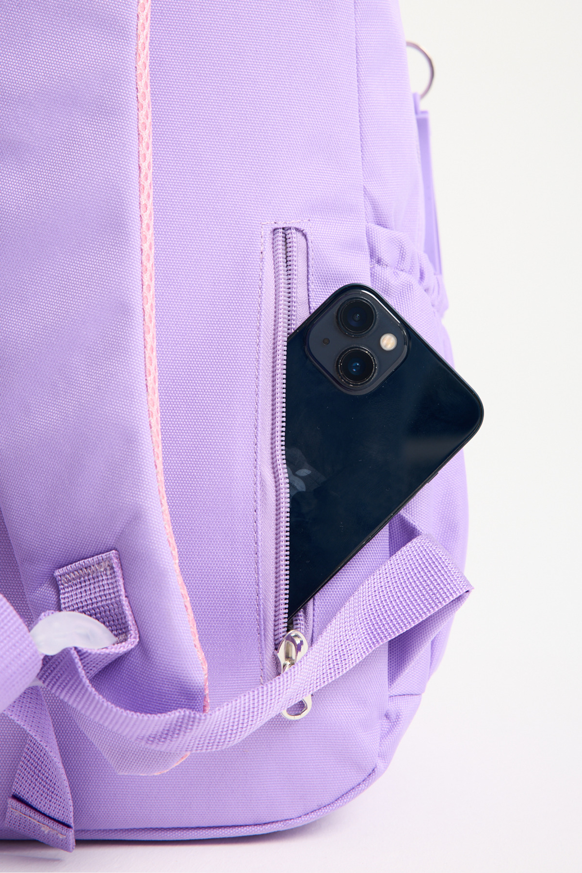 School backpack that draws attention with its lilac color, suitable for both girls and boys with its unisex design.