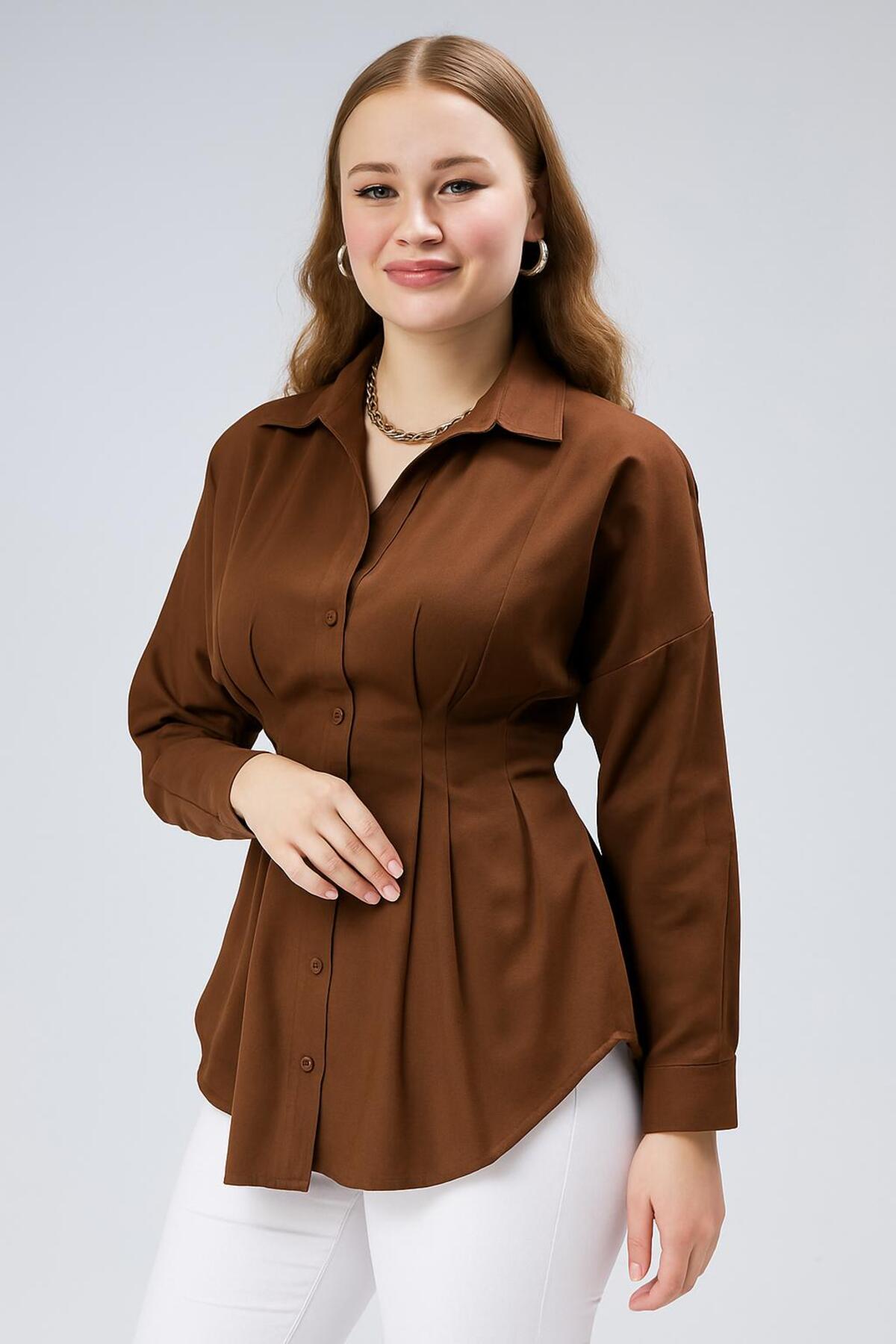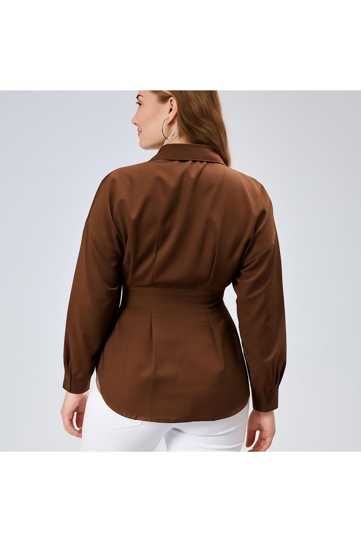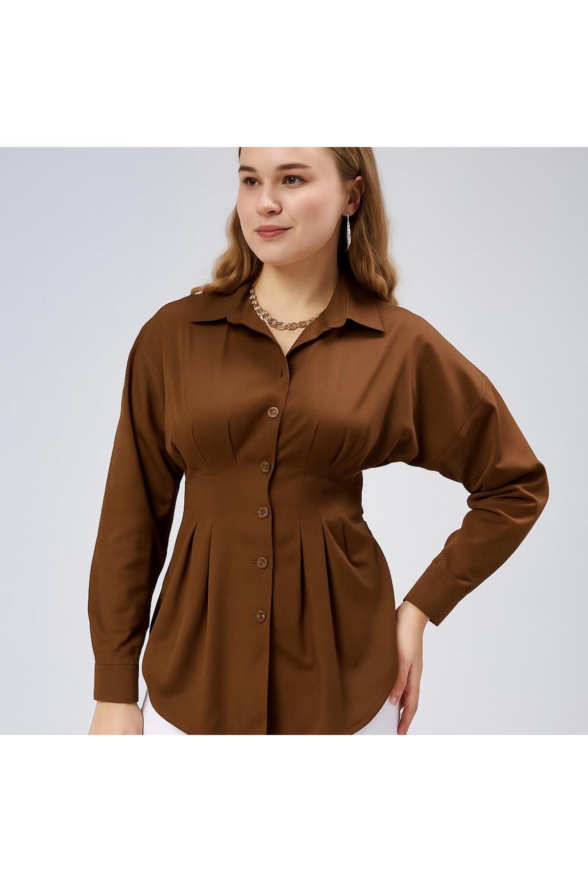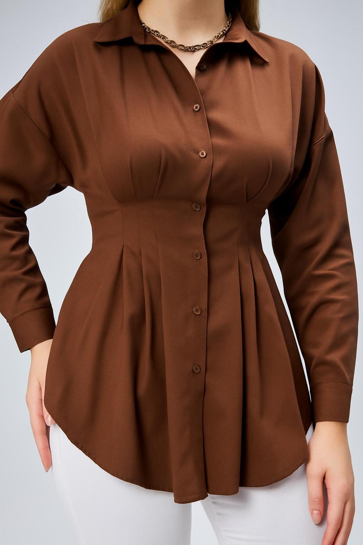 EMMAS CLOTHİNG Women's Pleated Brown Shirt with Waist Seat | ByTR
