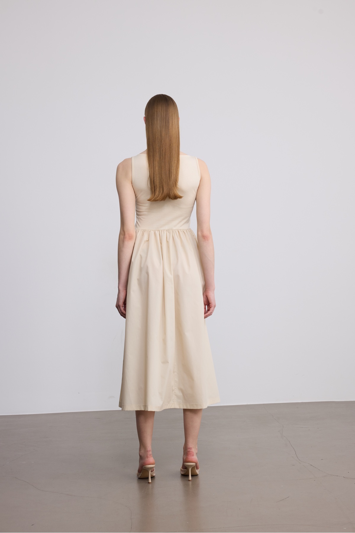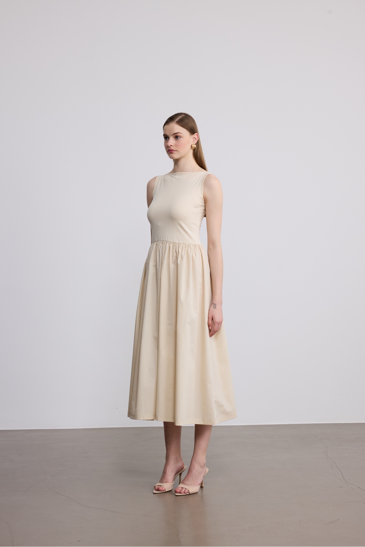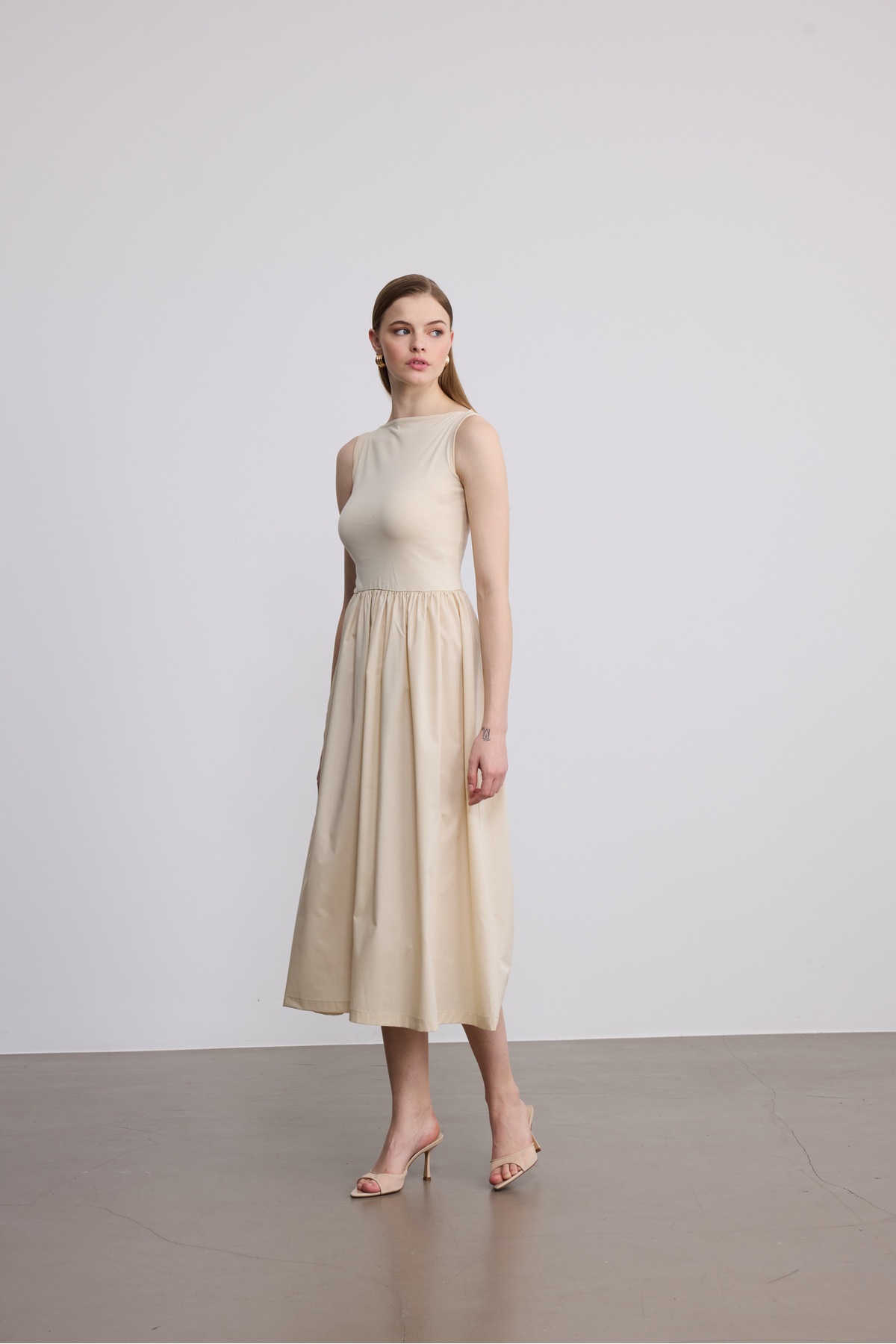 SevdeUgur Women's Maxi Size Stretch Knitted Poplin Skirt Stylish Cream Strap Dress / Sevde Ugur | ByTR