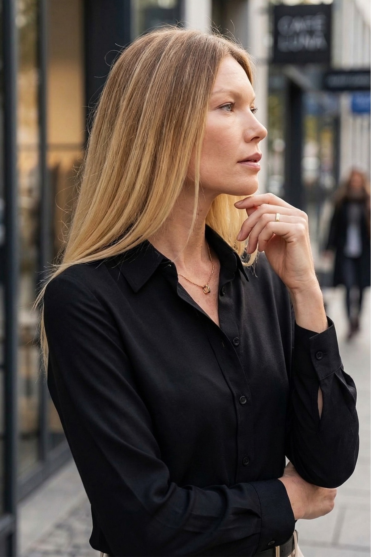 Tudors Women's Slim Fit Slim Fit Long Sleeve Cotton Body Fitting Textured Black Basic Shirt | ByTR