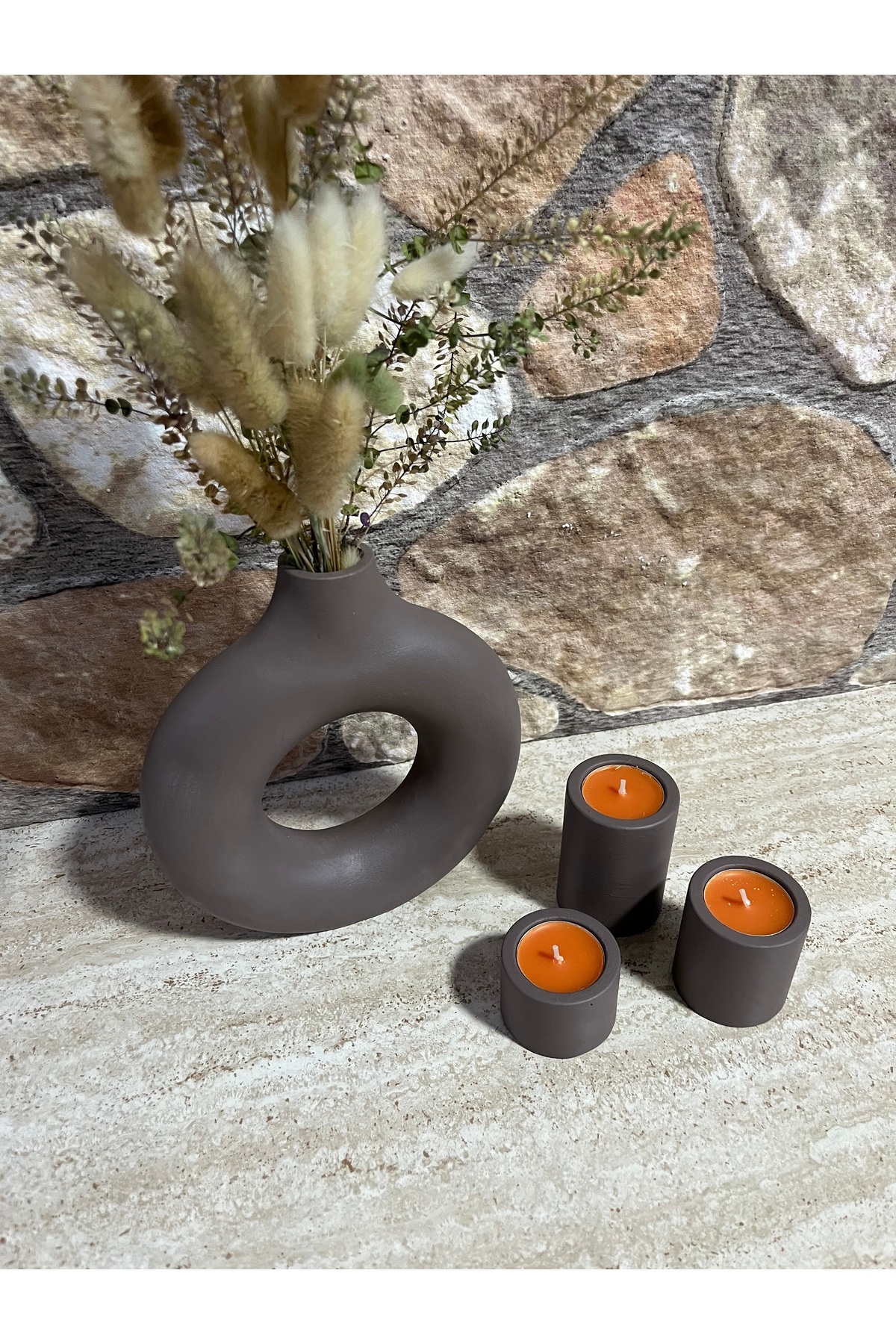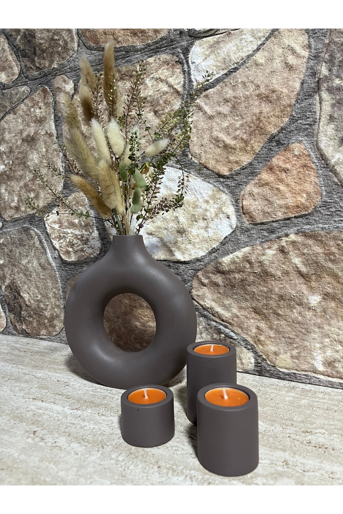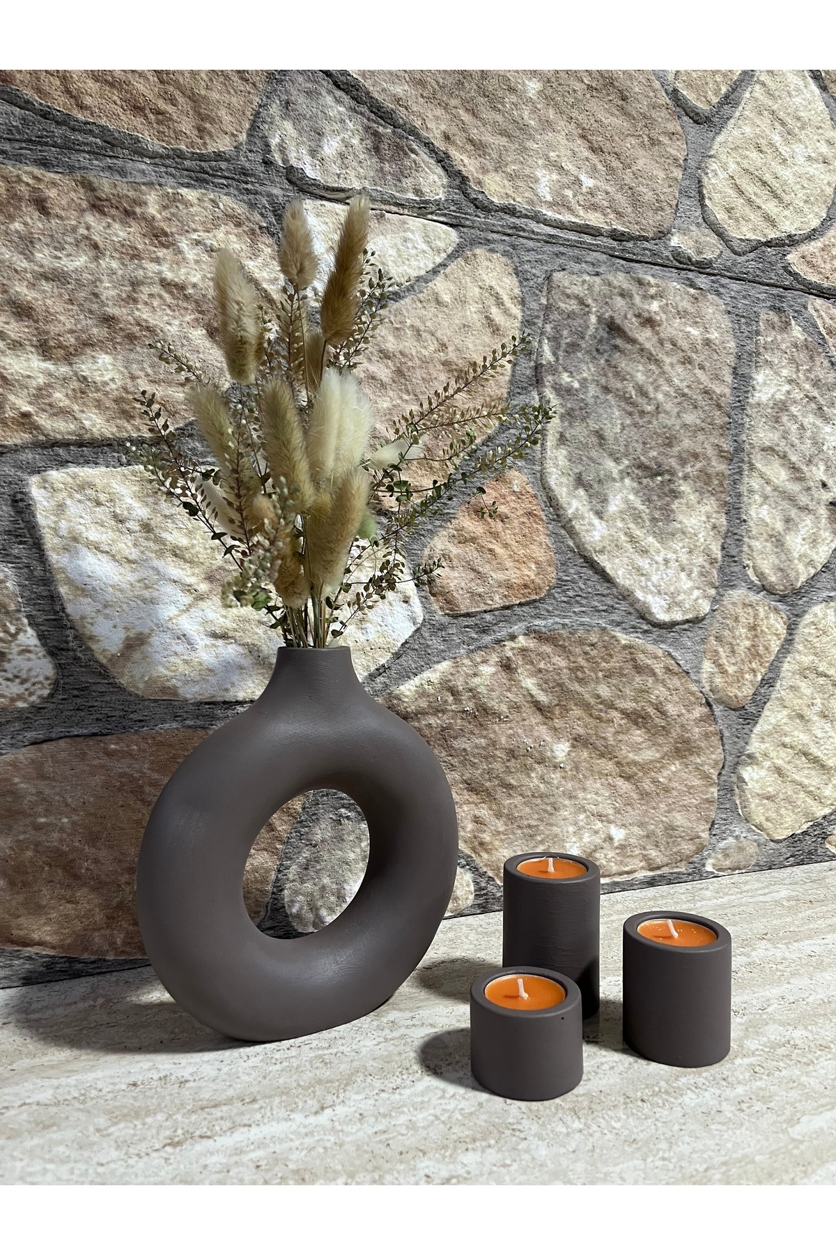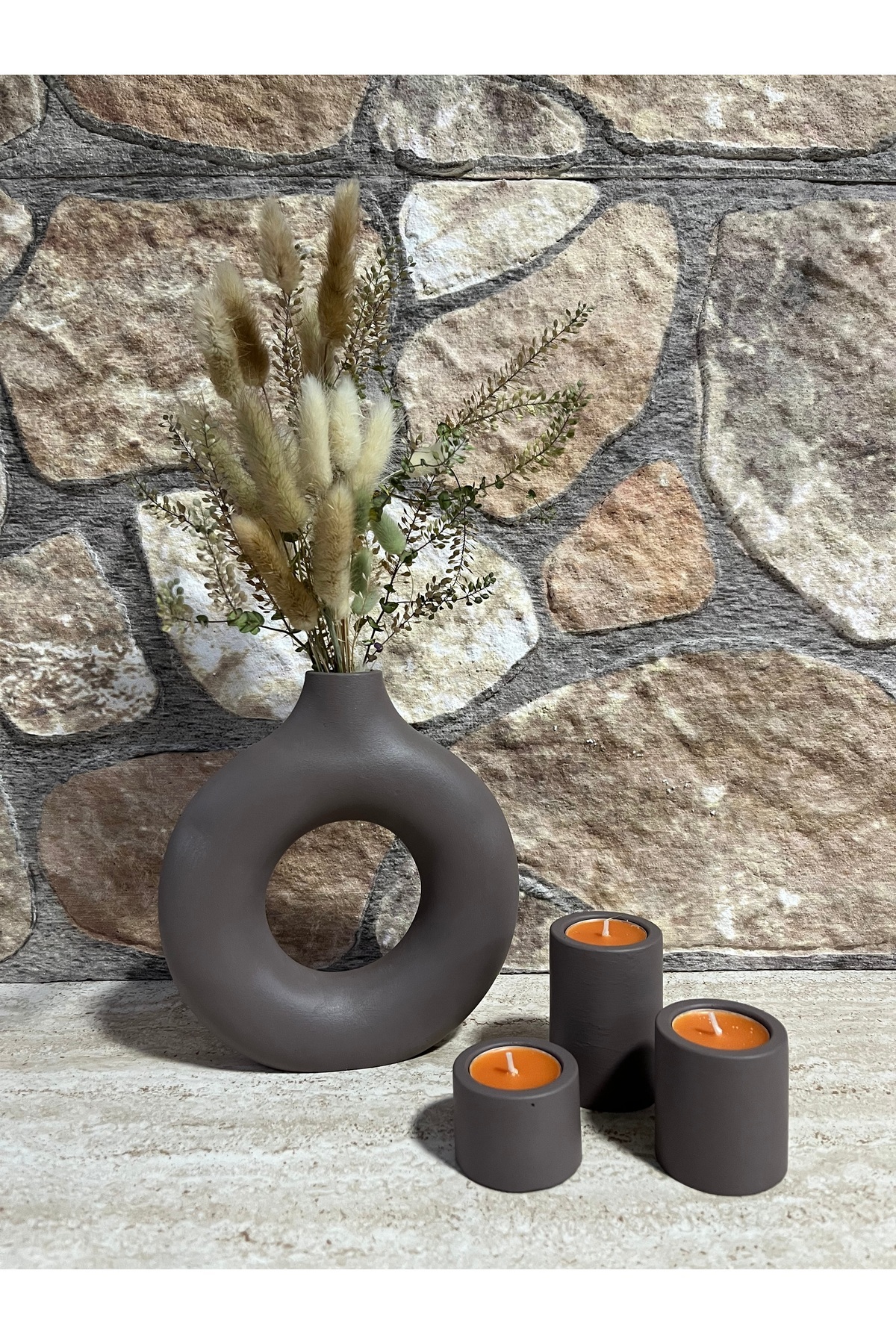 ERGİNCİ HOME Bohemian Style SCANDINAVIAN 1 large vase 3 candle holders Gift Pinterest Pampas Decorative Goods HIGH QUALITY | ByTR