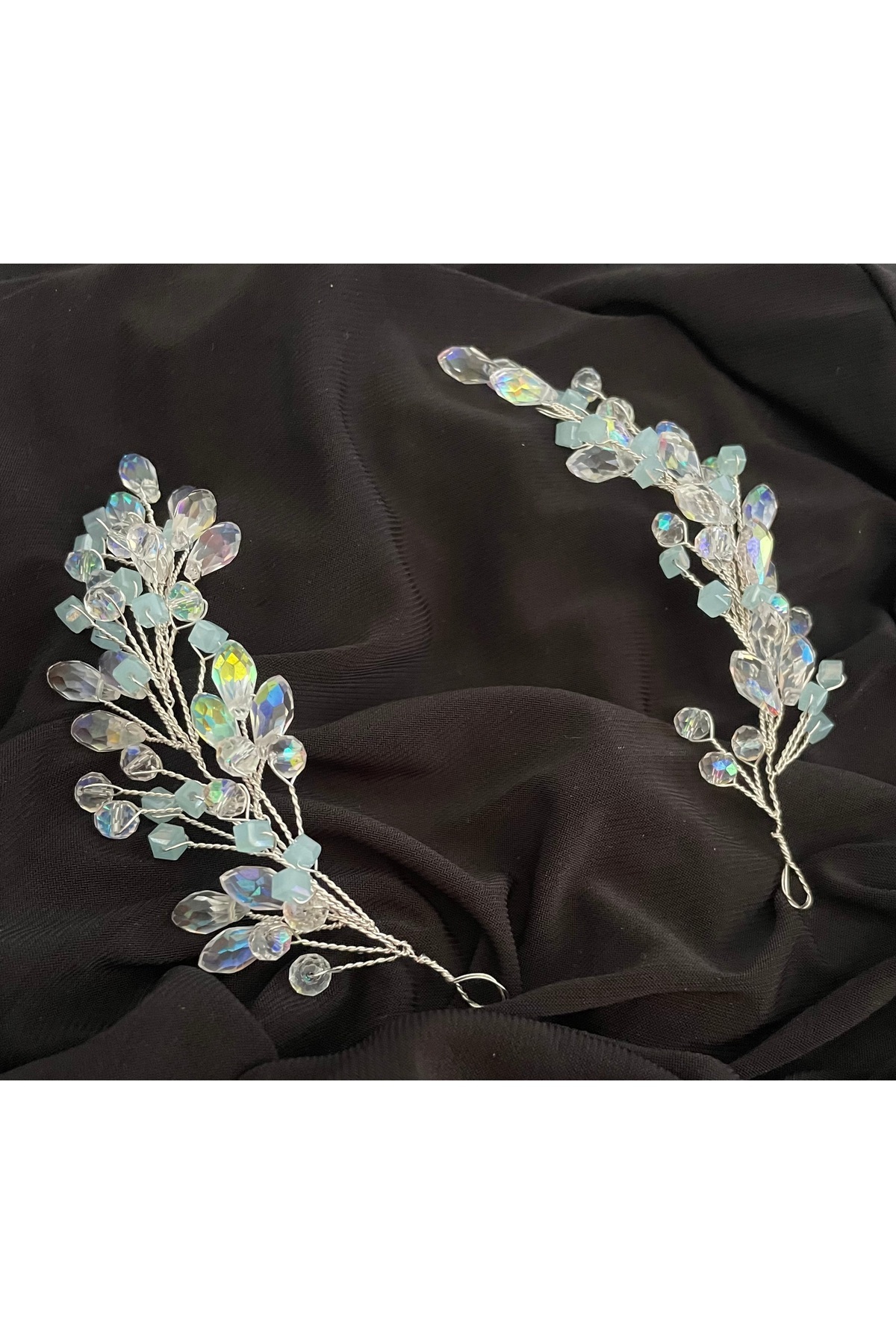 DesaAccessories Double Engagement with Drop Crystal Gemstone, Bridal Hair Accessory | ByTR