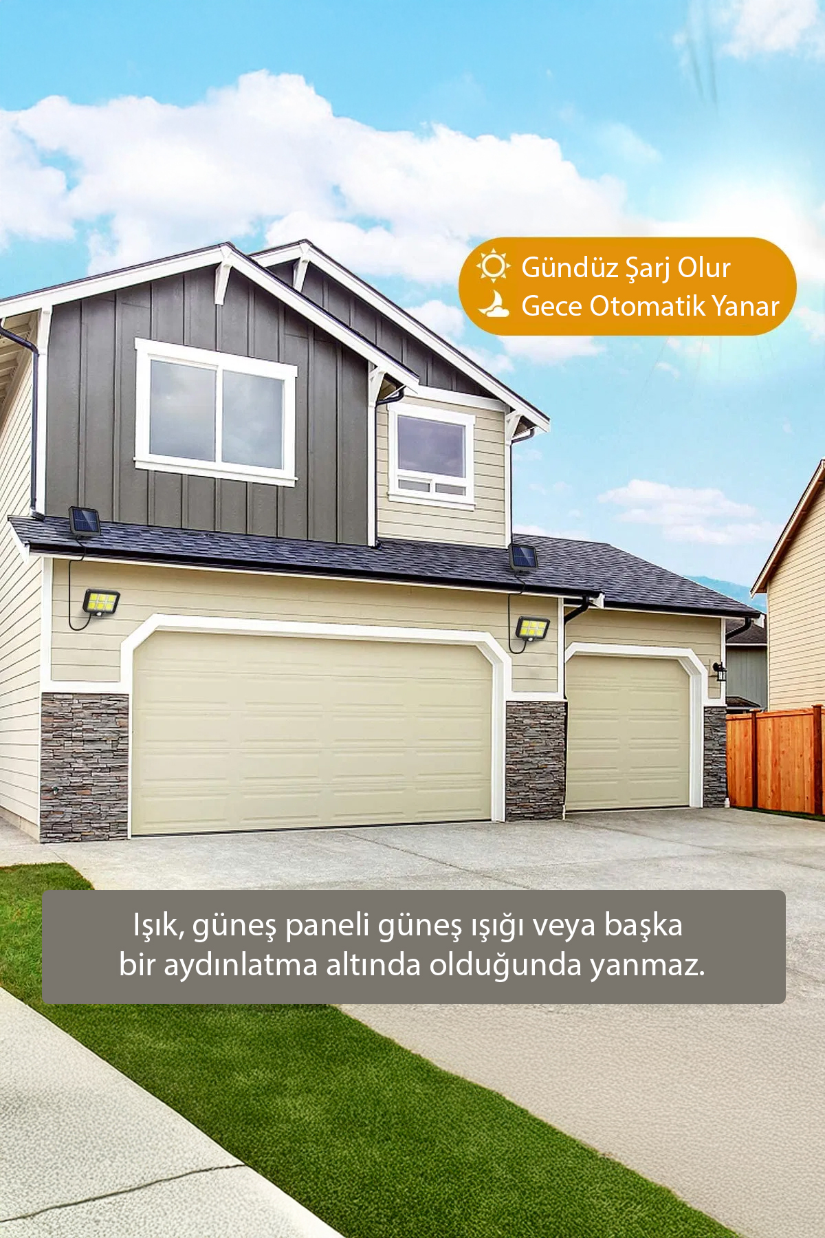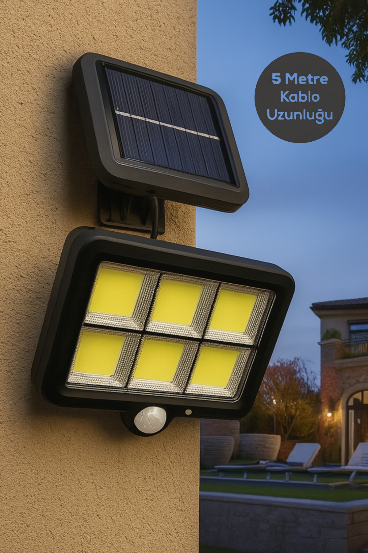 Solar Garden and Garage Lamp- 5m Wired, Waterproof, Auto-Burning Night Light