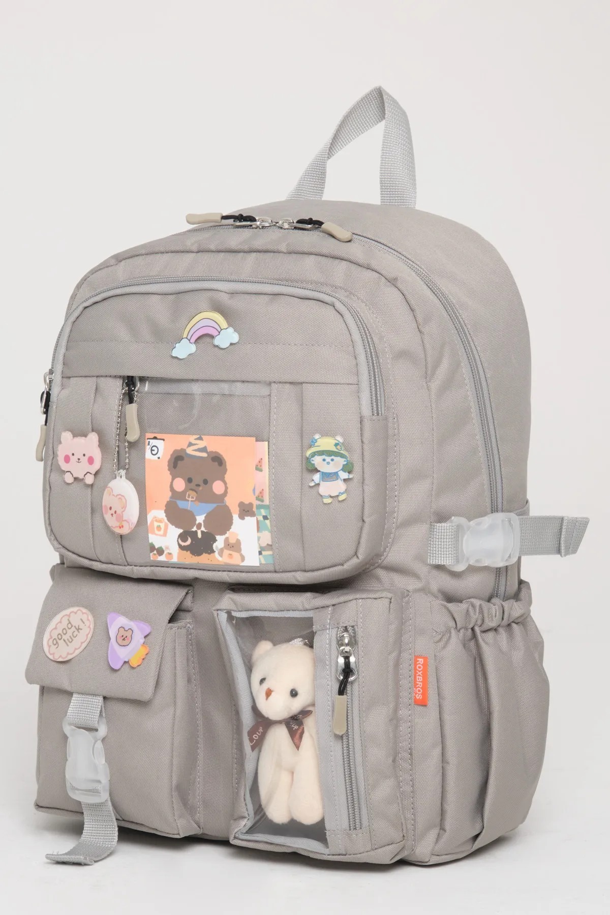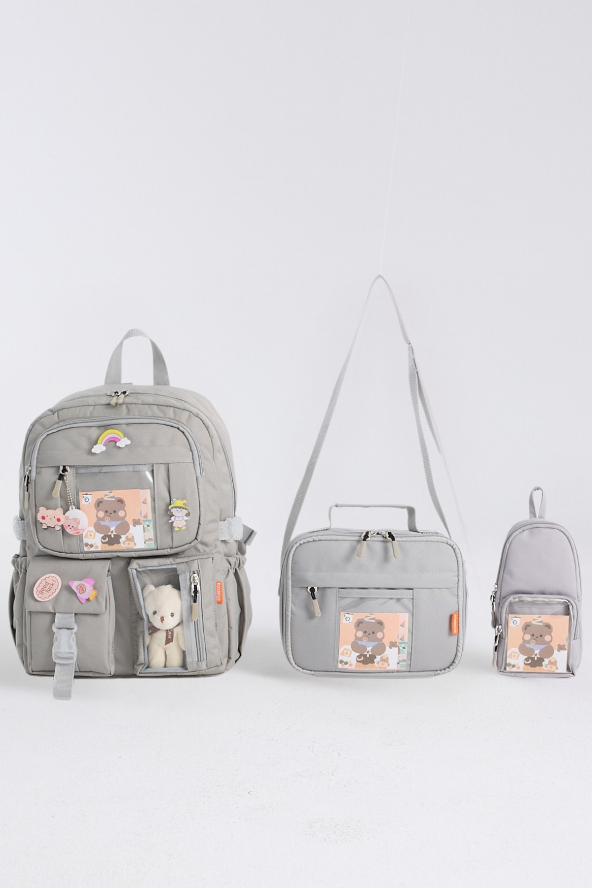 Roxbros Kawaii 3-Piece School Set: Primary School Bag, Lunch Bag and Pen Holder Meet this cute and functional 3-Piece school set offered with Roxbros quality that will fill your children's school days with joy, order and comfort! This set, which has been carefully designed to meet all the needs of primary school-aged little ones, stands out with its vibrant color options and cute details.