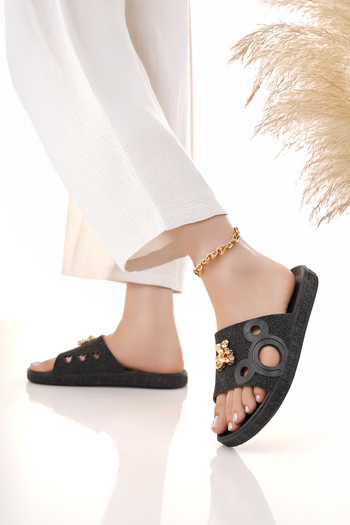 Modafırsat Women's Slippers Black Anti-Slip Waterproof Stylish Home Outdoor Beach Summer Casual Slippers | ByTR