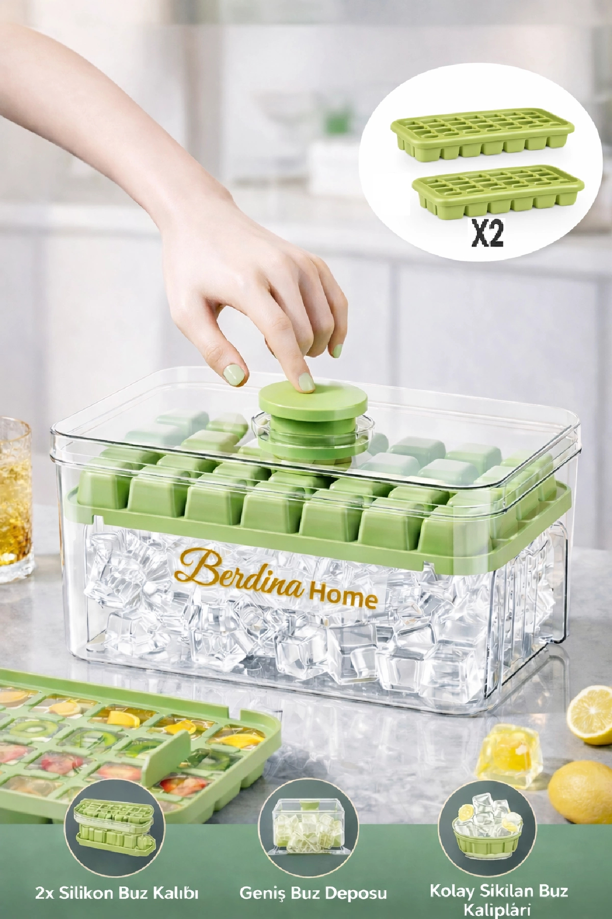 Berdina Home New Generation Pressed Double Ice Mold Freezer – 56 Compartment Reservoir Ice Cube with Lid Storage Box | ByTR