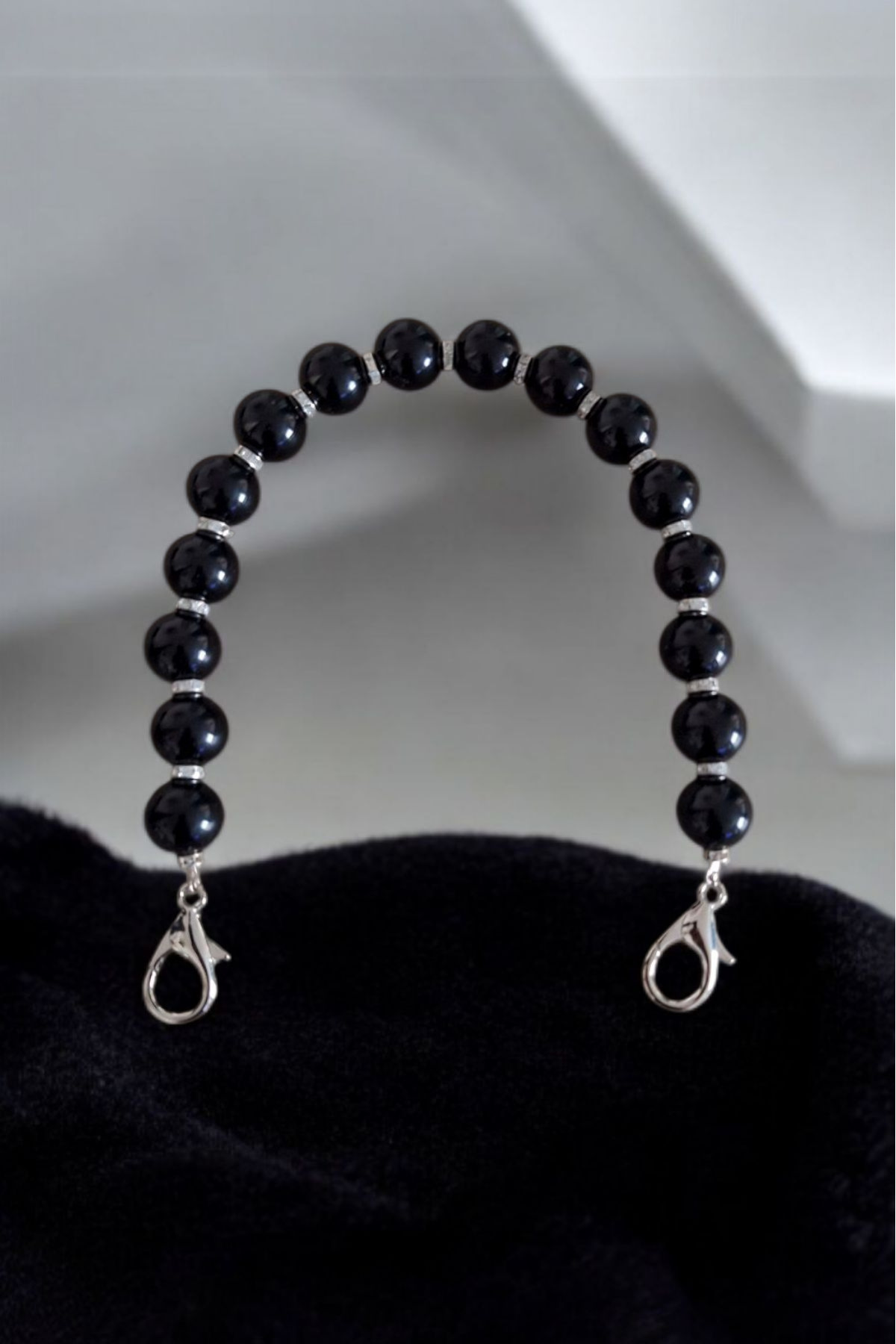 Attracting attention with its elegant design, the silver colored accessory complements your elegance with its pearl model bag handle.