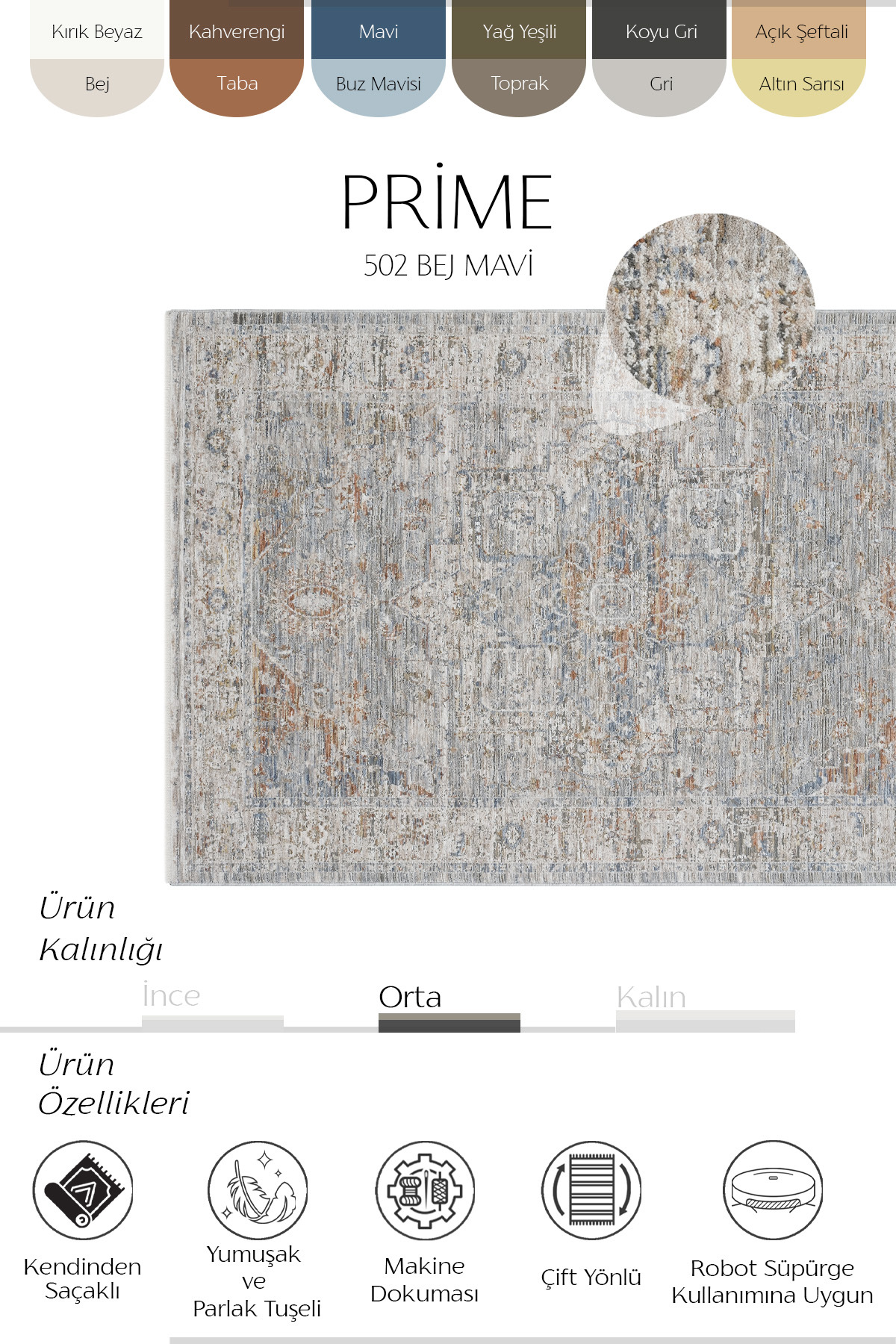 The Prime 502 Beige Blue model combines classic carpet patterns with contemporary tones, adding an elegant touch of the past to spaces.