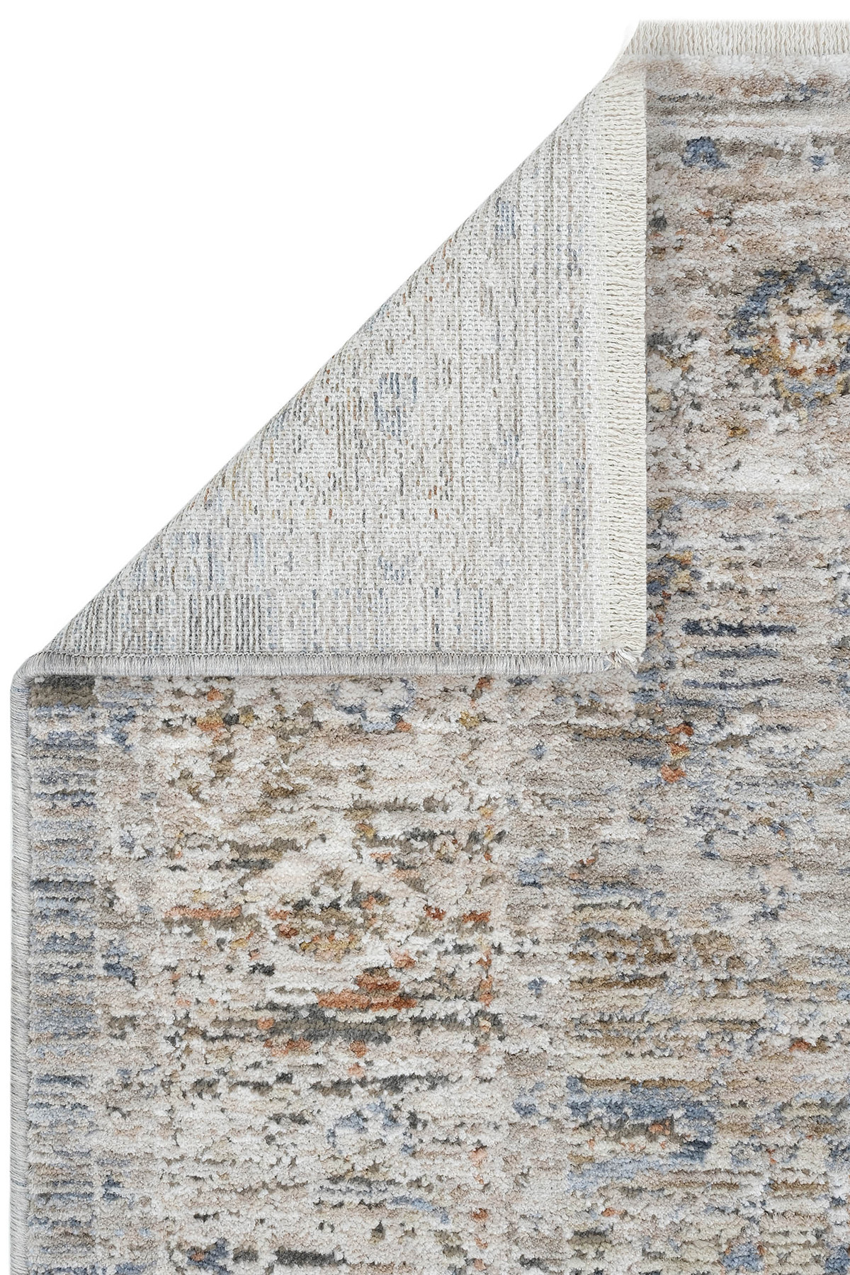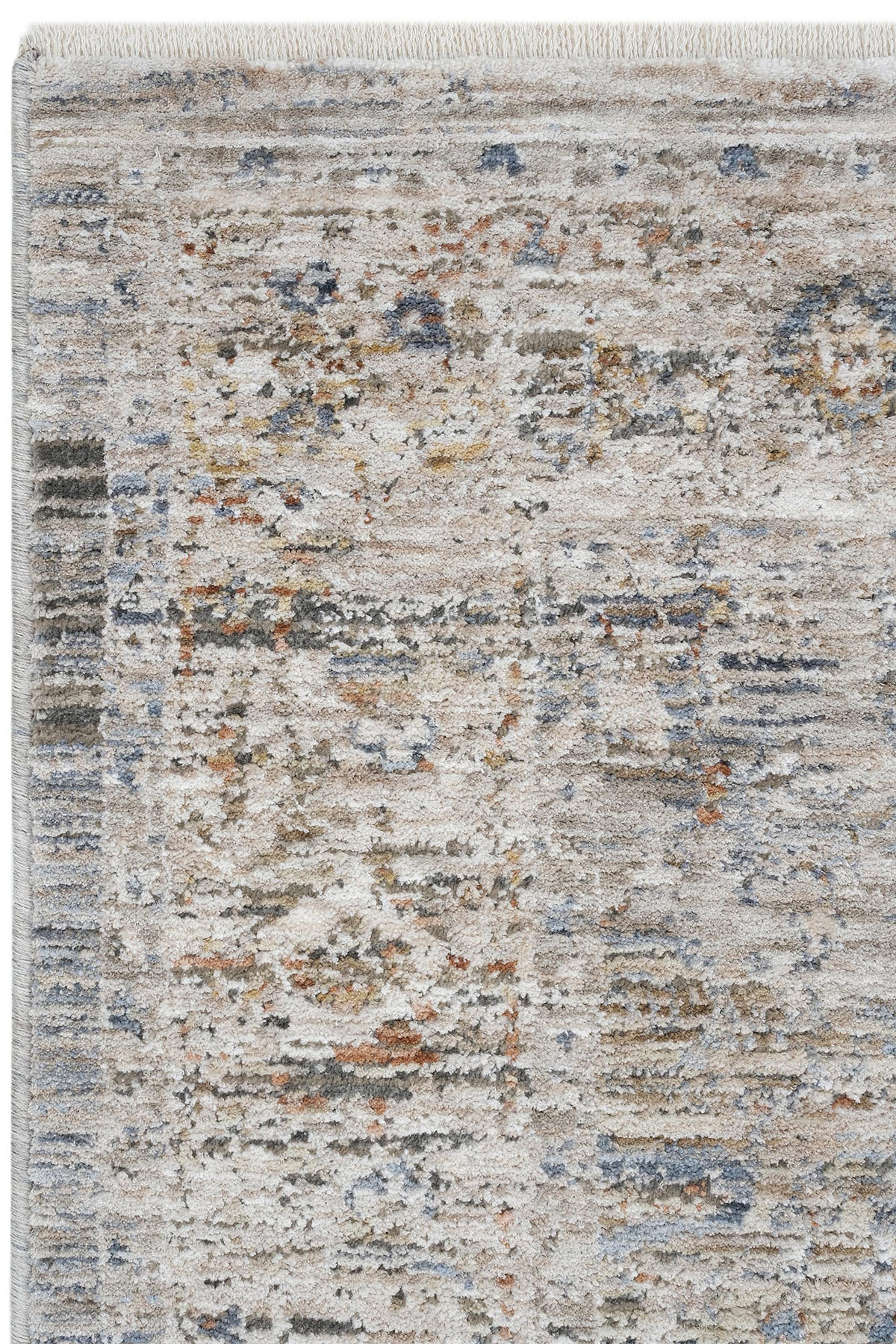 Product Description, Classic Patterned Beige Blue Carpet | Machine Woven Carpet with Antiquated Appearance, Soft Texture and Fringed