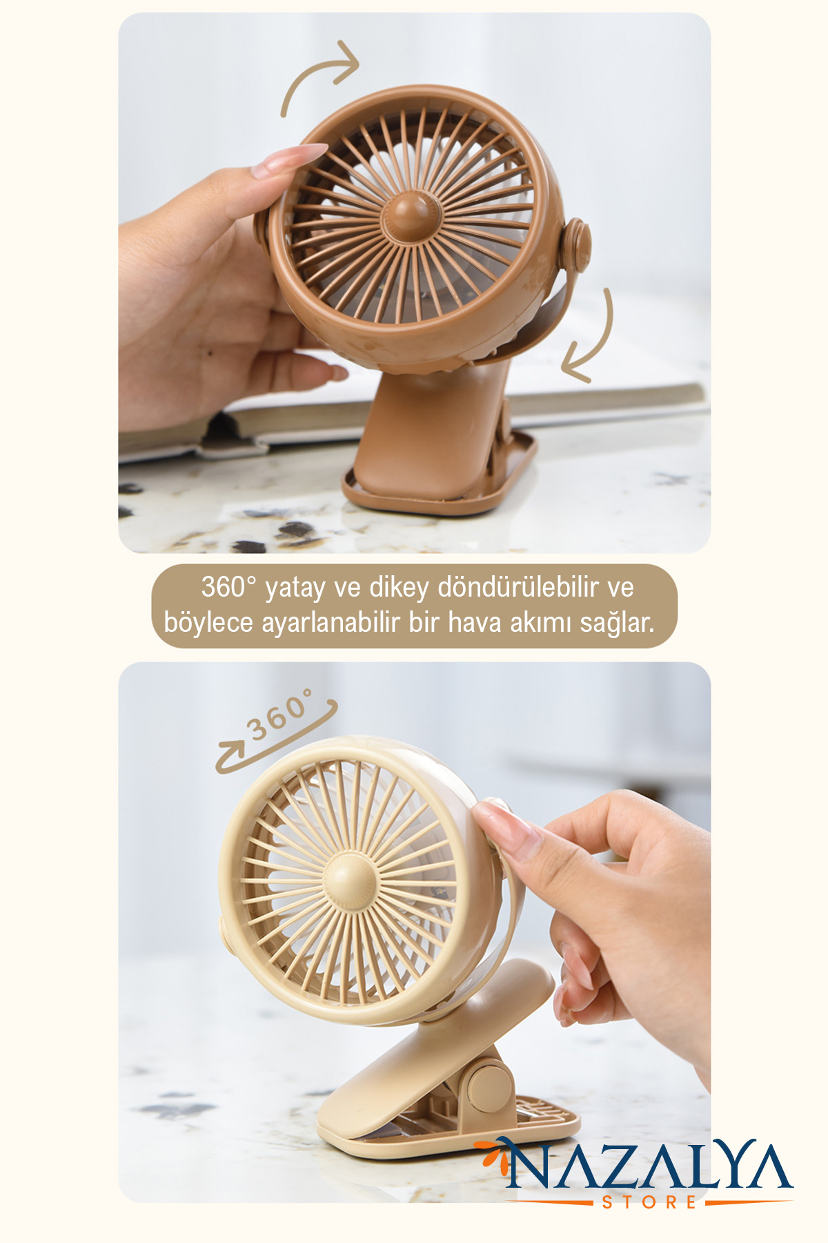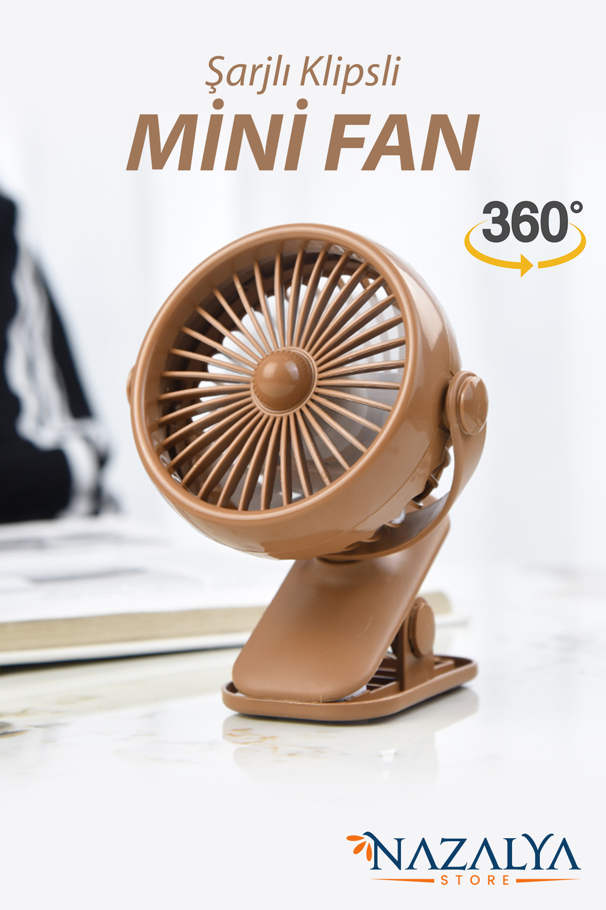 Nazalya Portable Fan Fan with Rechargeable Clamp - Portable Table Fan Cooler with Clip | ByTR