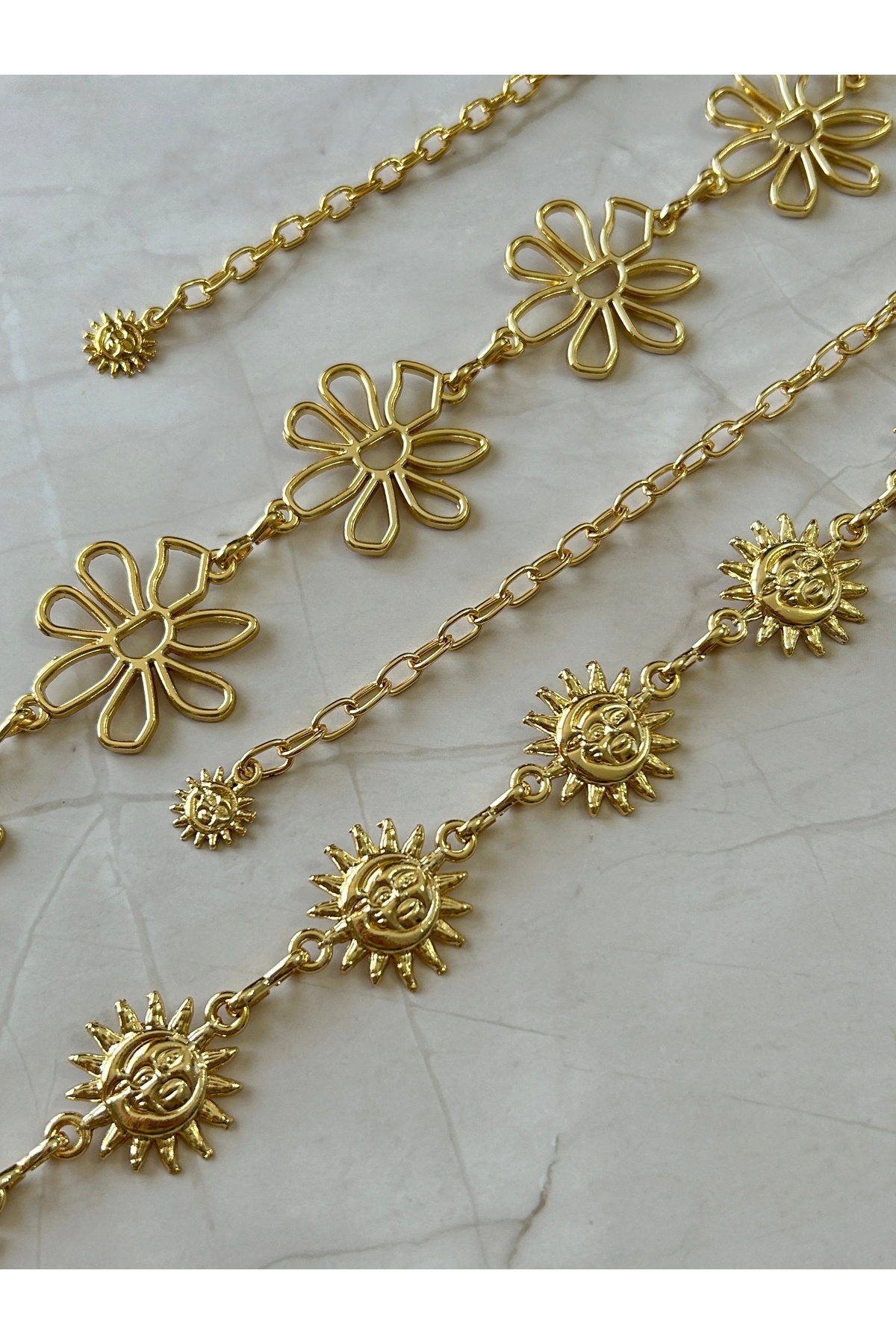 Set of 2 chain belts decorated with flower and sun figures, offering elegance and elegance together.