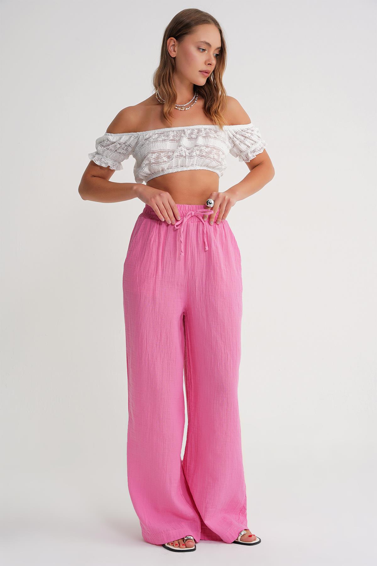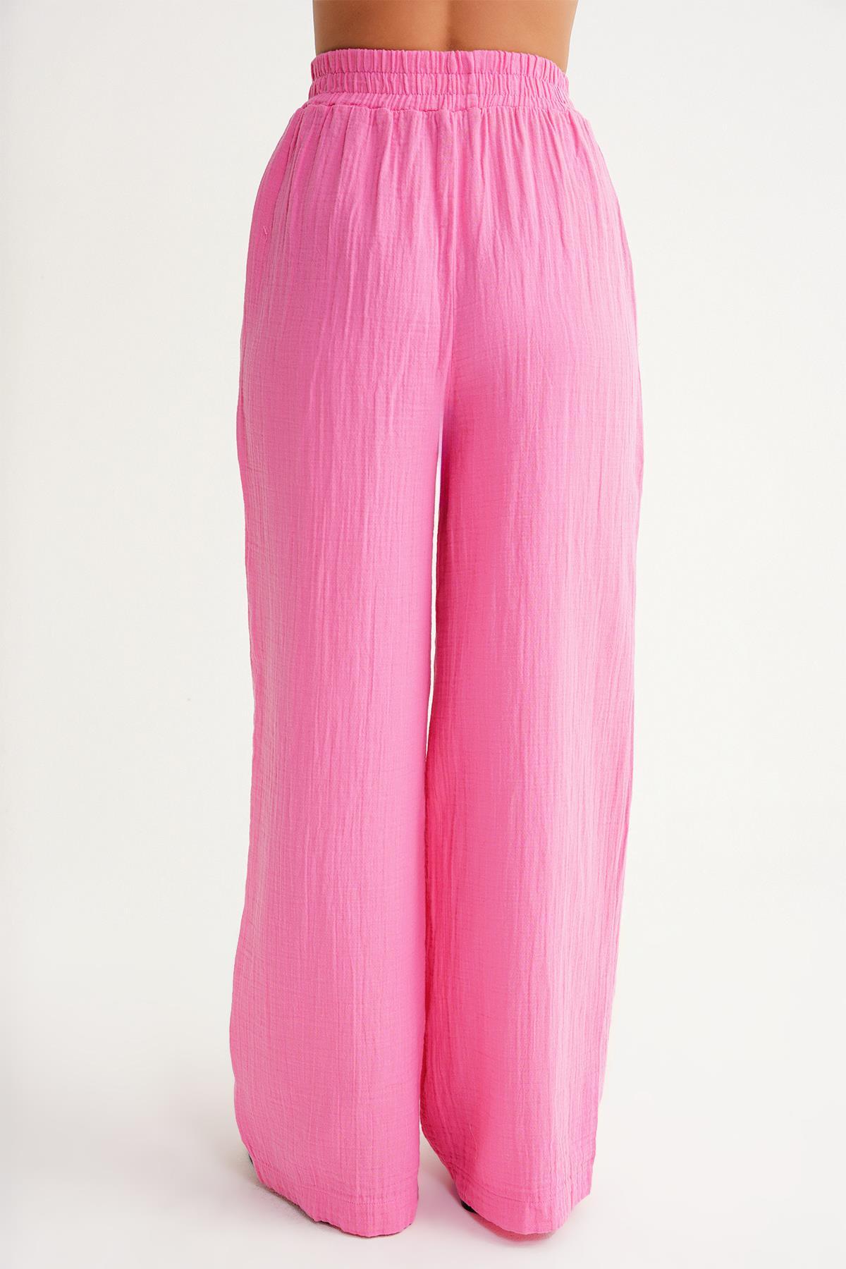 4286 Women's Elastic Wide Leg Waist Muslin Palazzo Pants Pink