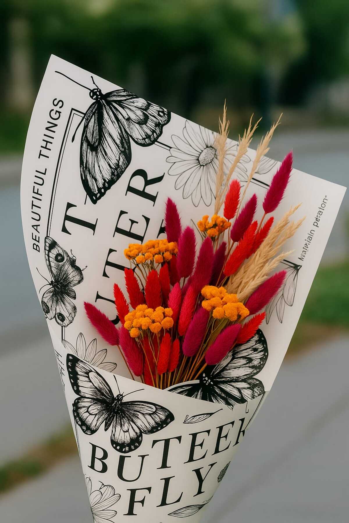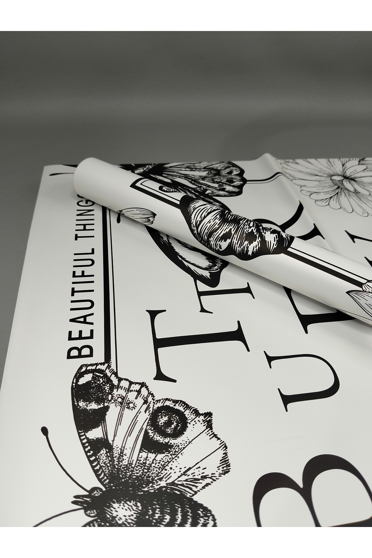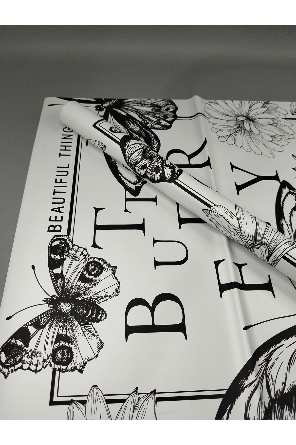 ÇINARASYADAHOME Black & White Butterfly & Floral Wrapping Paper | Artistic Bouquet & Gift Pack 57x57 4pcs | ByTR