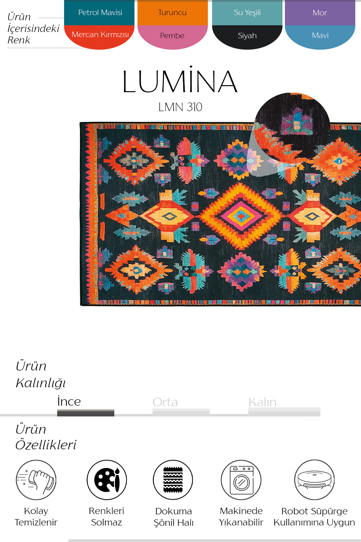 This carpet, which is both visually impressive and provides convenience in daily use, touches your interior with imagination.