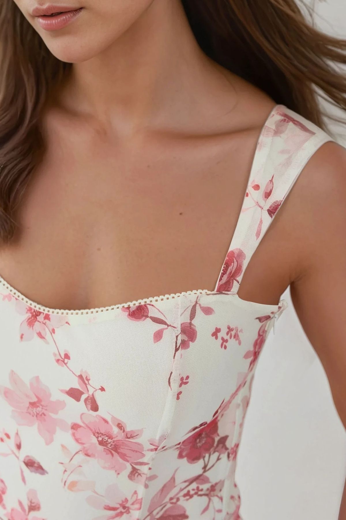 Product Description: Meet our Heart Collar Patterned Maxi Dress, a gorgeous and feminine piece perfect for any event.