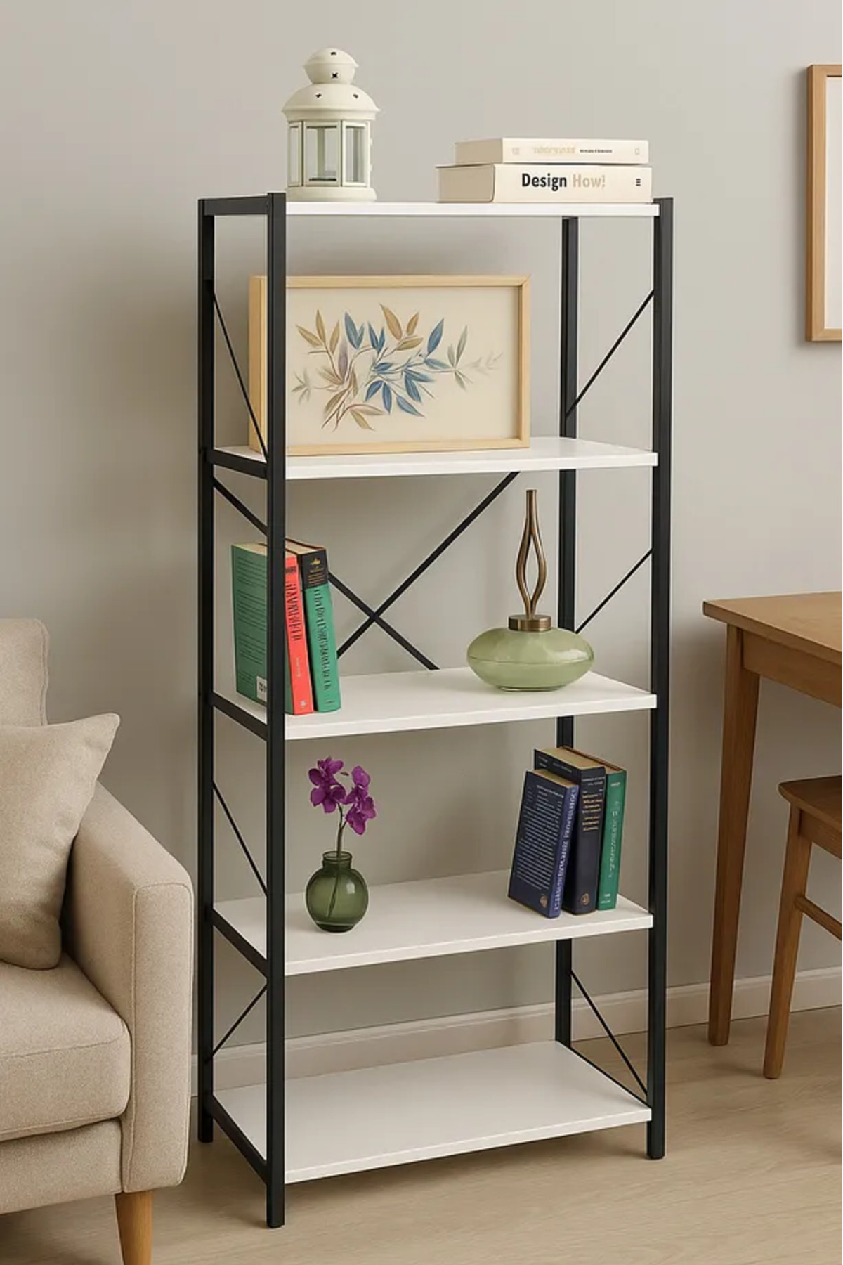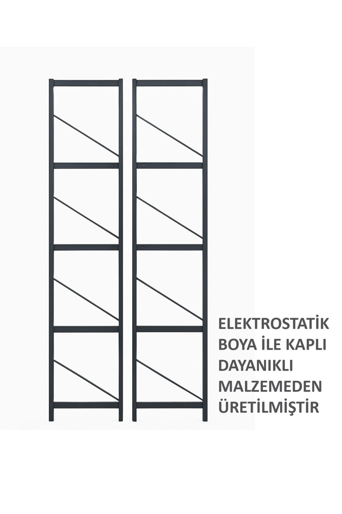 Product Features: • Number of Shelves: 5 • Material: Metal body, chipboard shelf • Color: Black body - White shelf • Usage Area: Kitchen, pantry, balcony, office • Easy installation, solid structure, space saving If you want, I can also create a description according to different areas (eg student house, office, etc.