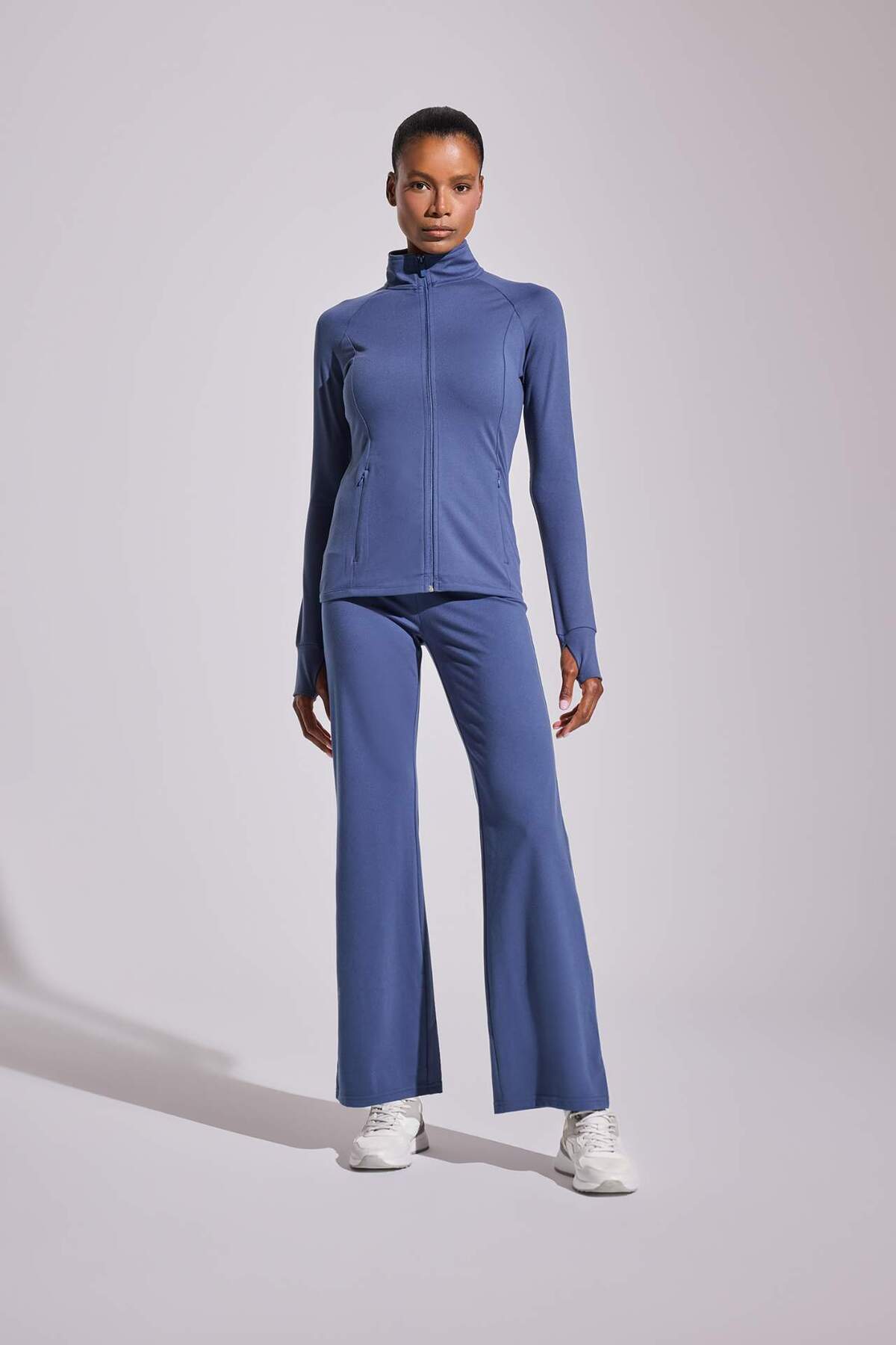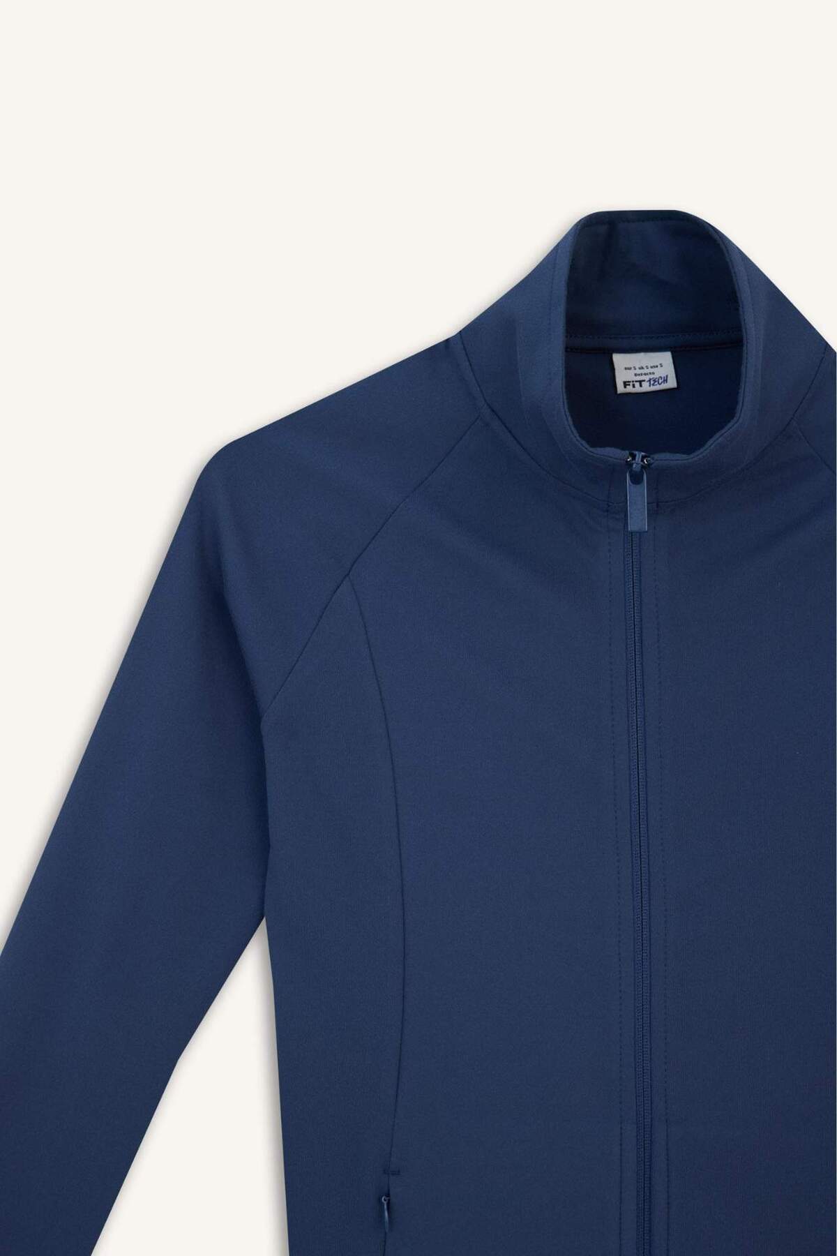 Fitted upright neck sports cardigan offers both a functional and stylish look with its double pocketed and zippered design.