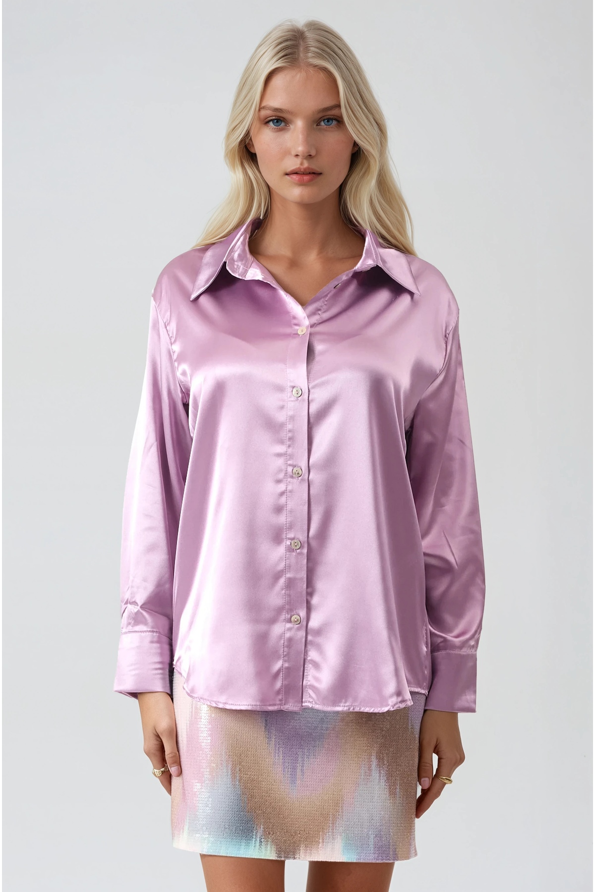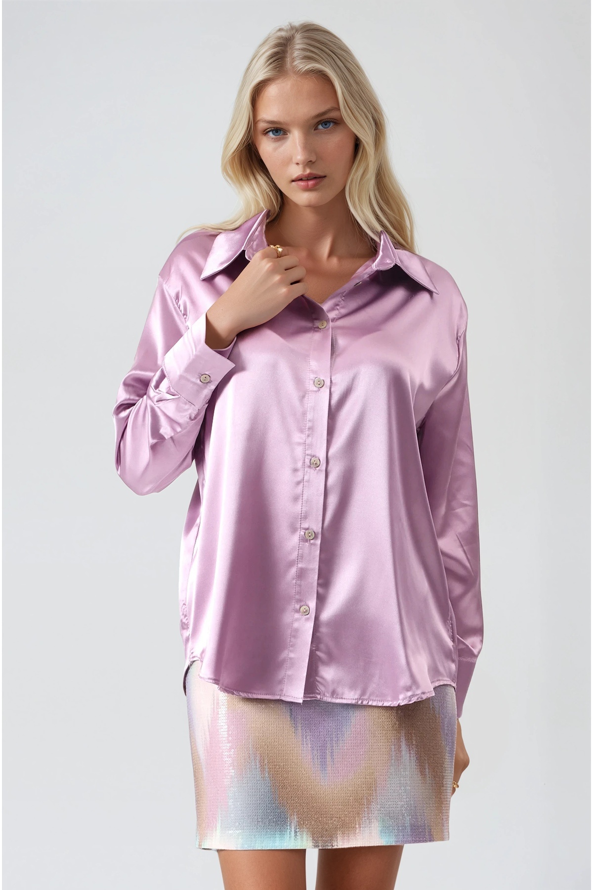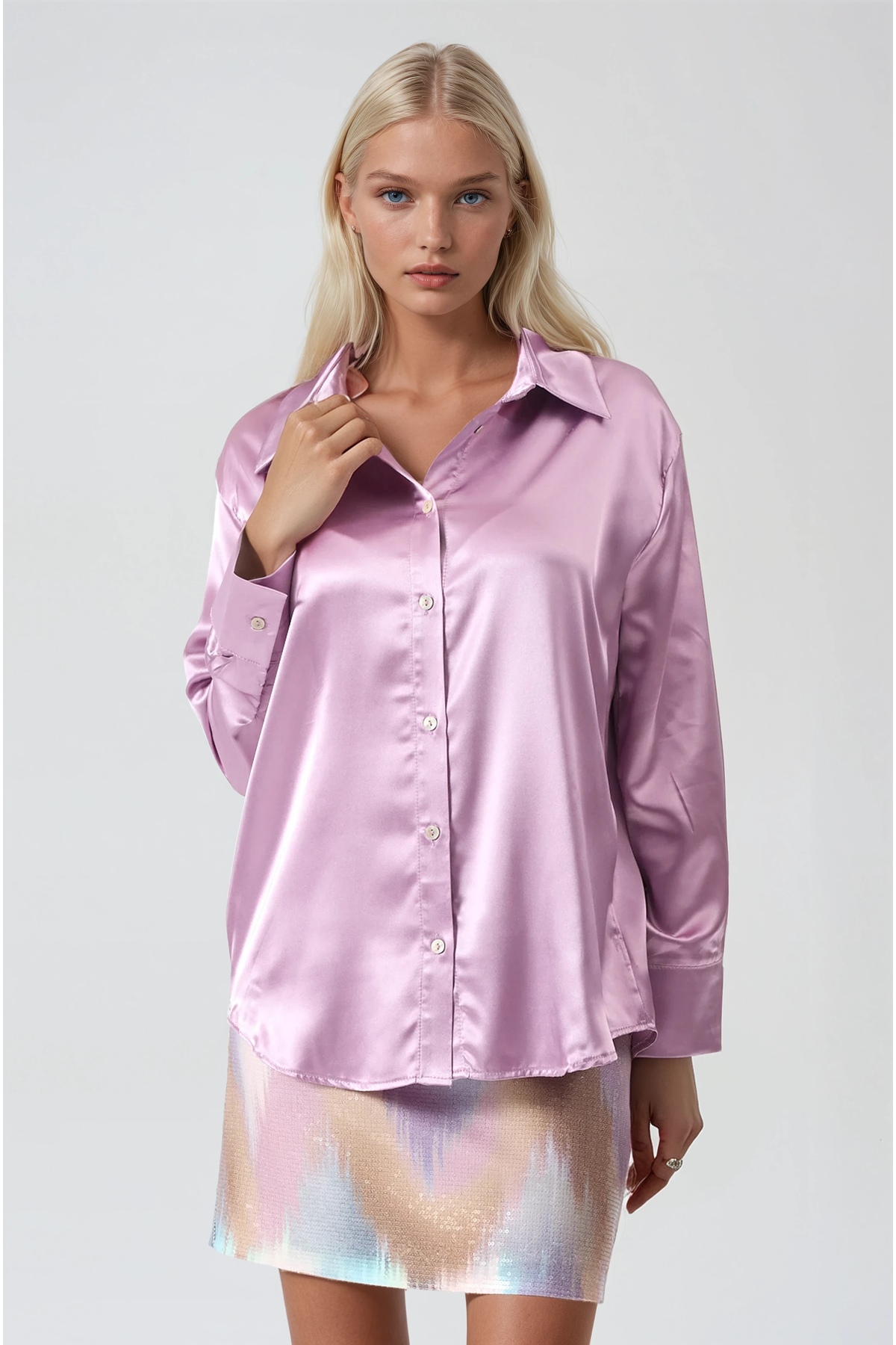 Premium satin shirt designed for women and girls, appealing to the adult age group.