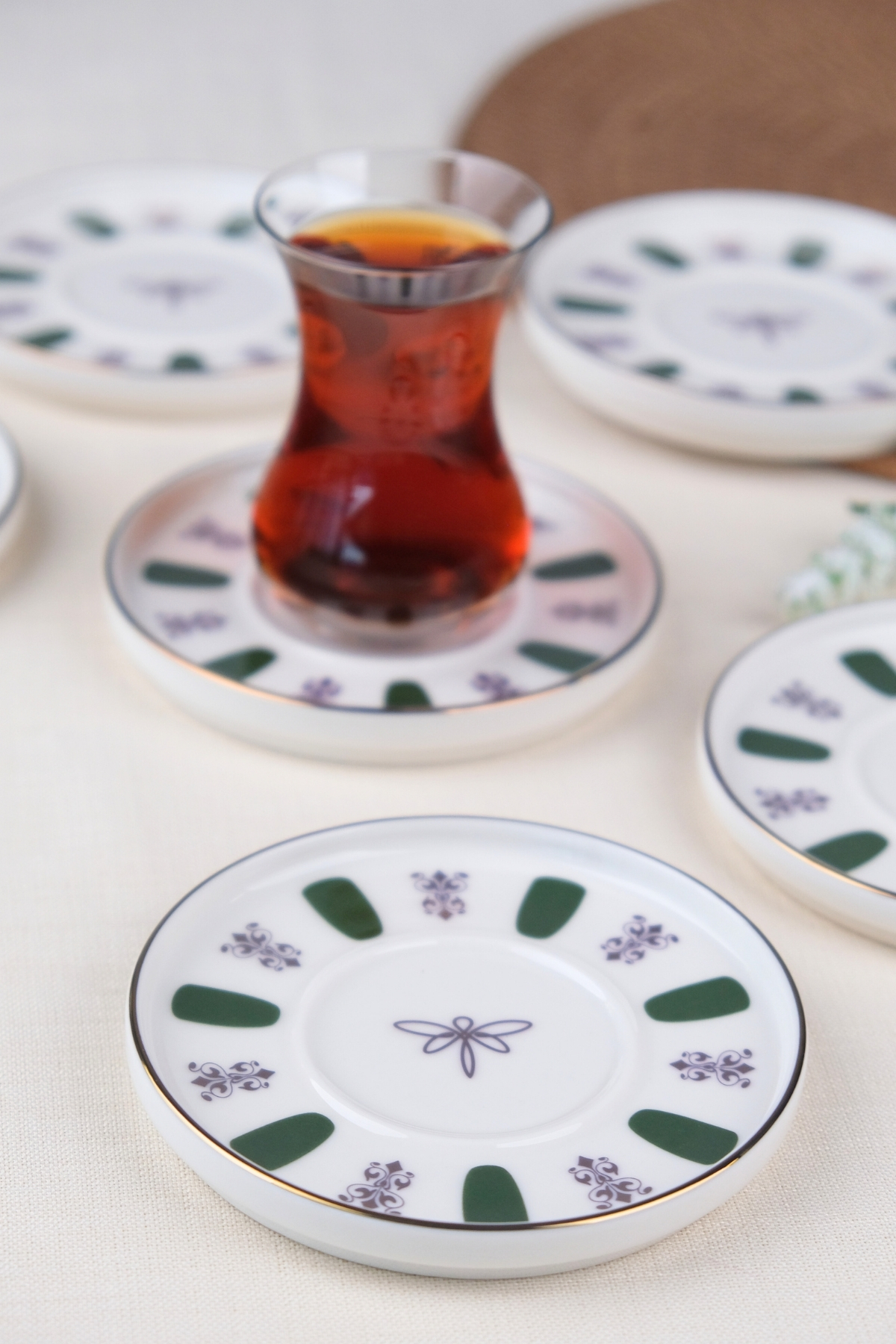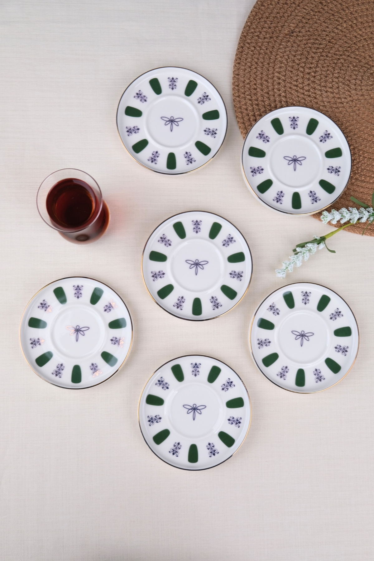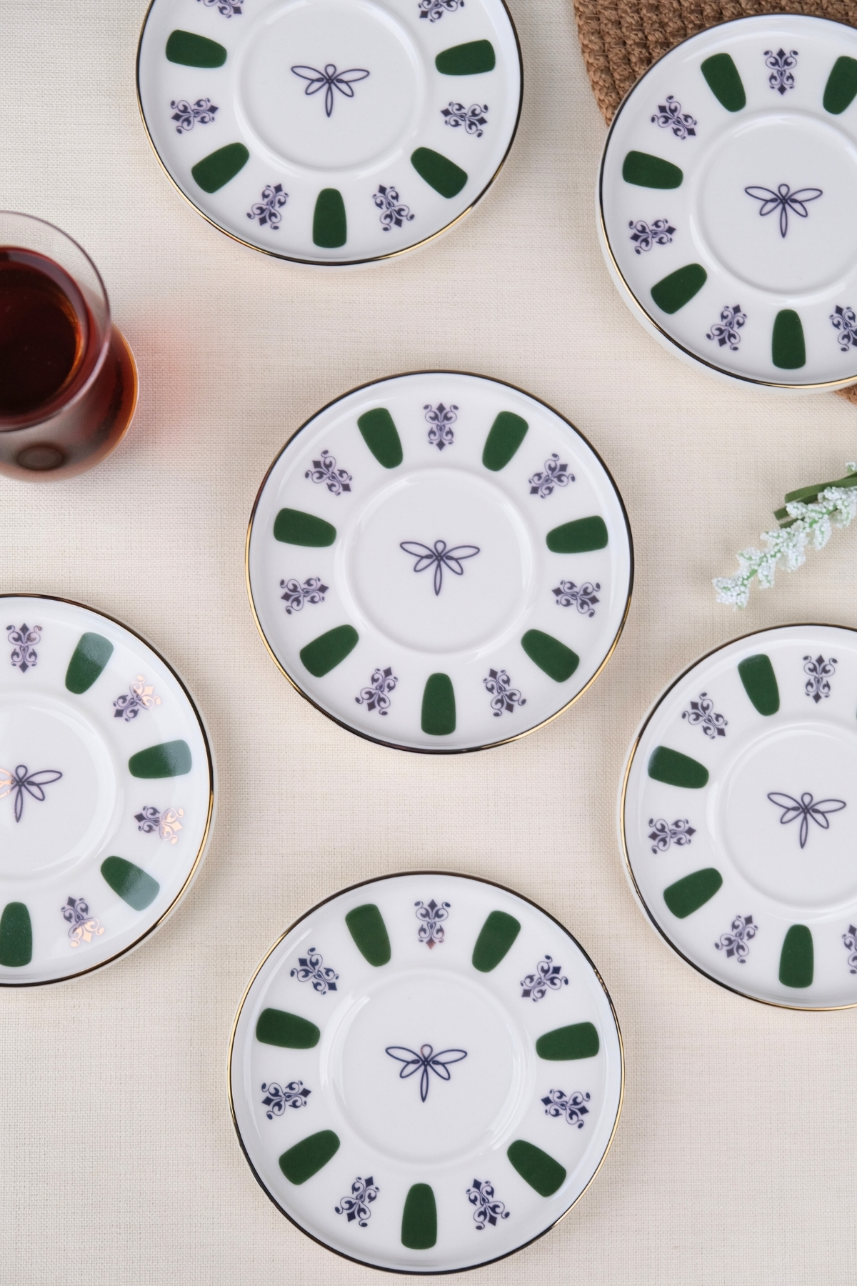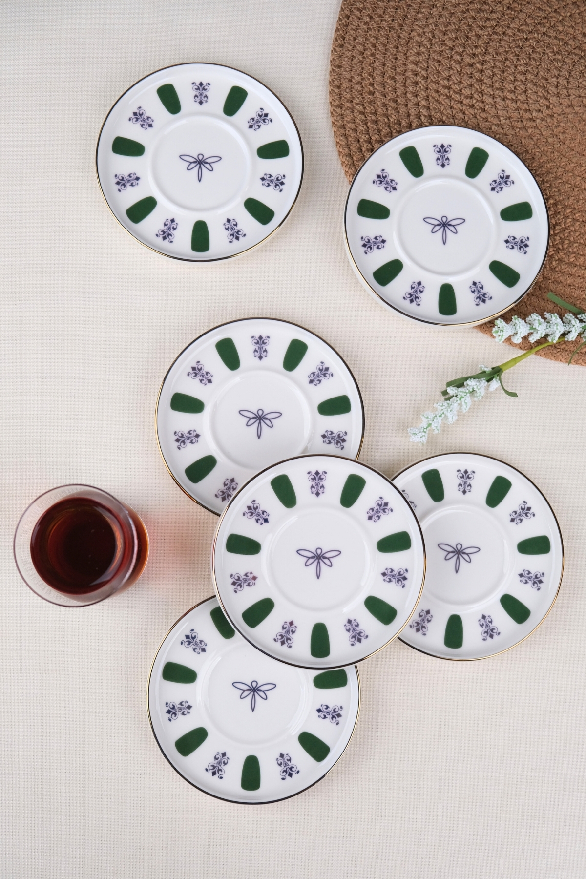 House of Plates Porcelain Acem Zade Green Tea Plate 11.8cm 6 pieces Dishwasher safe.