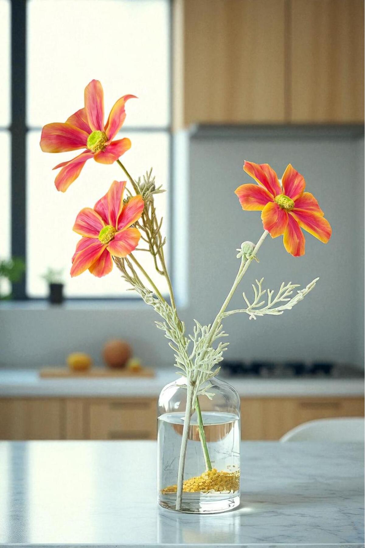 With its elegant design inspired by nature, the artificial cosmos flower brings a warm and spacious atmosphere to your living spaces.