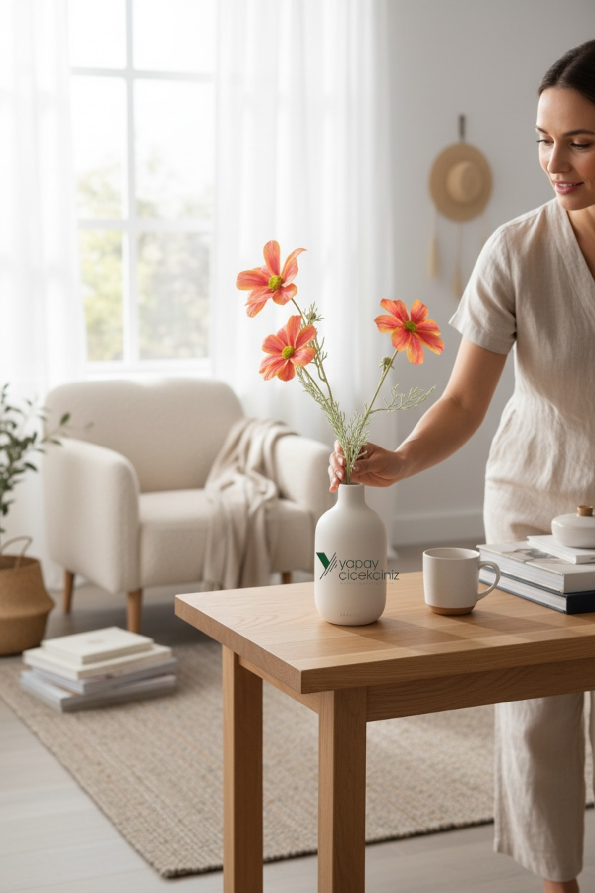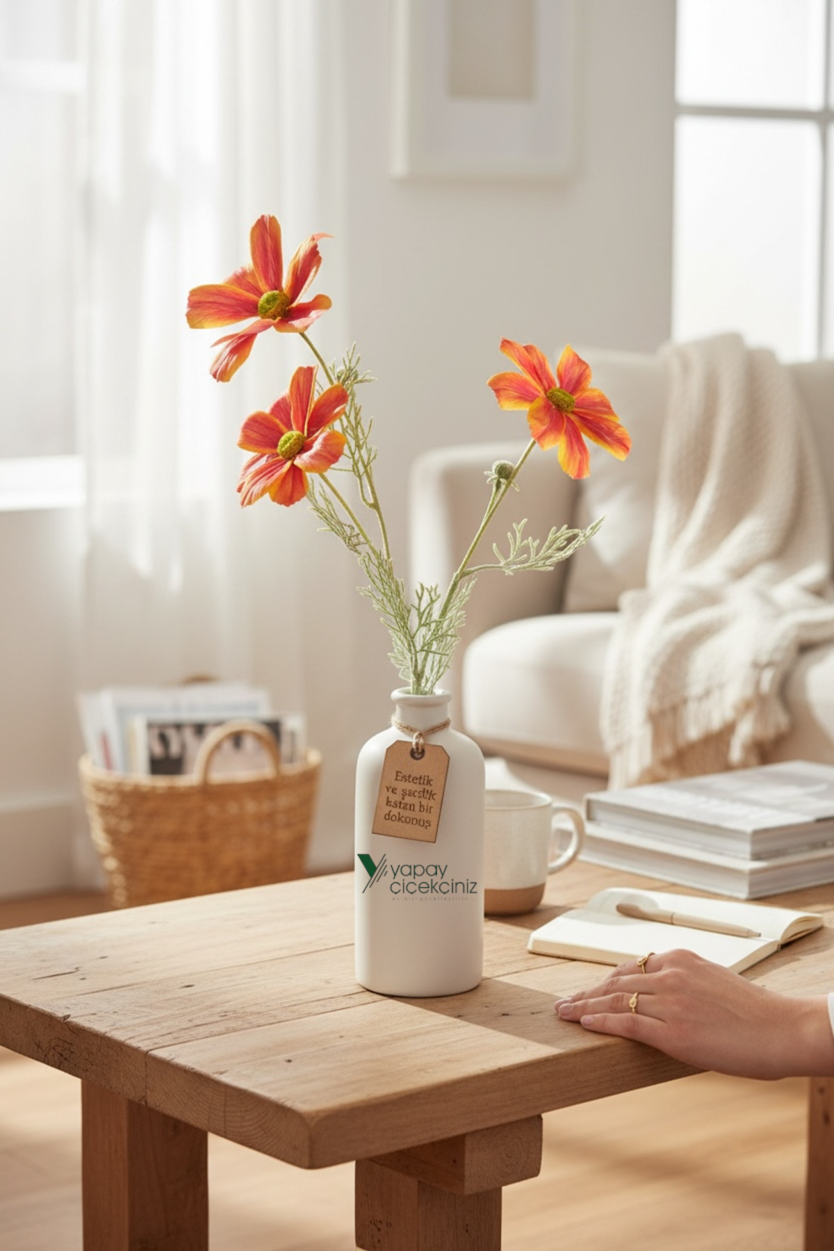 Product Features: • Artificial flower in Cosmos form Vibrant and natural color appearance • Maintenance-free, long-lasting • Suitable for indoor use Areas of Use: • Living room and living room • Office and workspaces • Table, coffee table and console top • Home and workplace decoration • Gift option The product is artificial, there is no need for irrigation or sunlight.