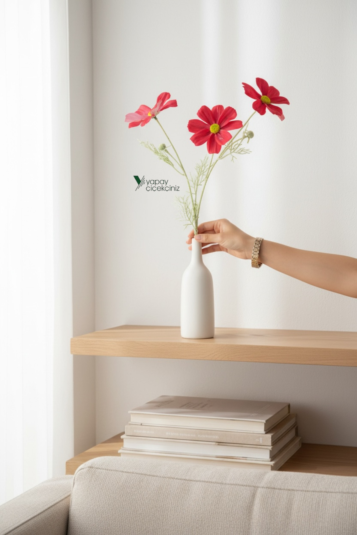 With its elegant design inspired by nature, the artificial cosmos flower brings a warm and spacious atmosphere to your living spaces.