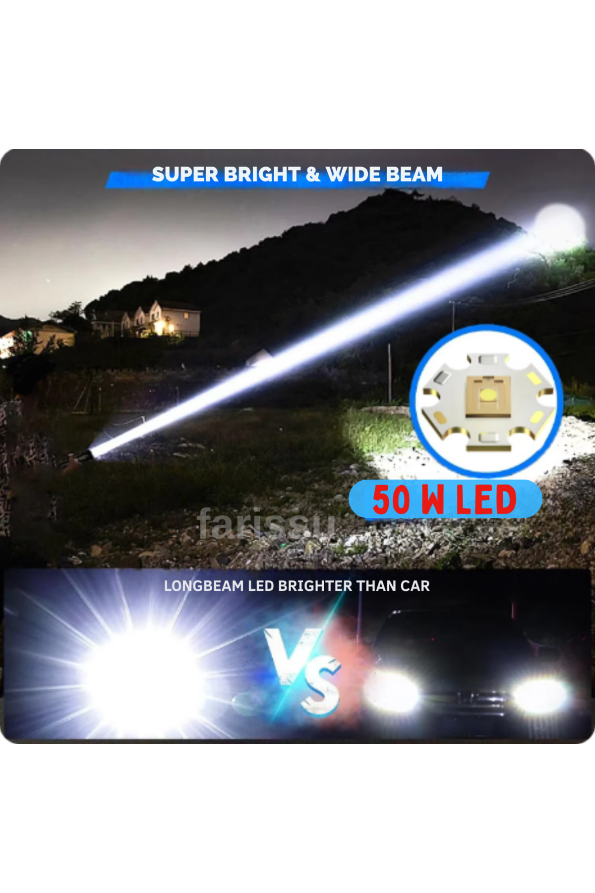 farissu SMALL SUN 50W 5000 Lumens 26800 Model 8800 mAh battery 1.5 with 2 Km Range 10 hours working time | ByTR