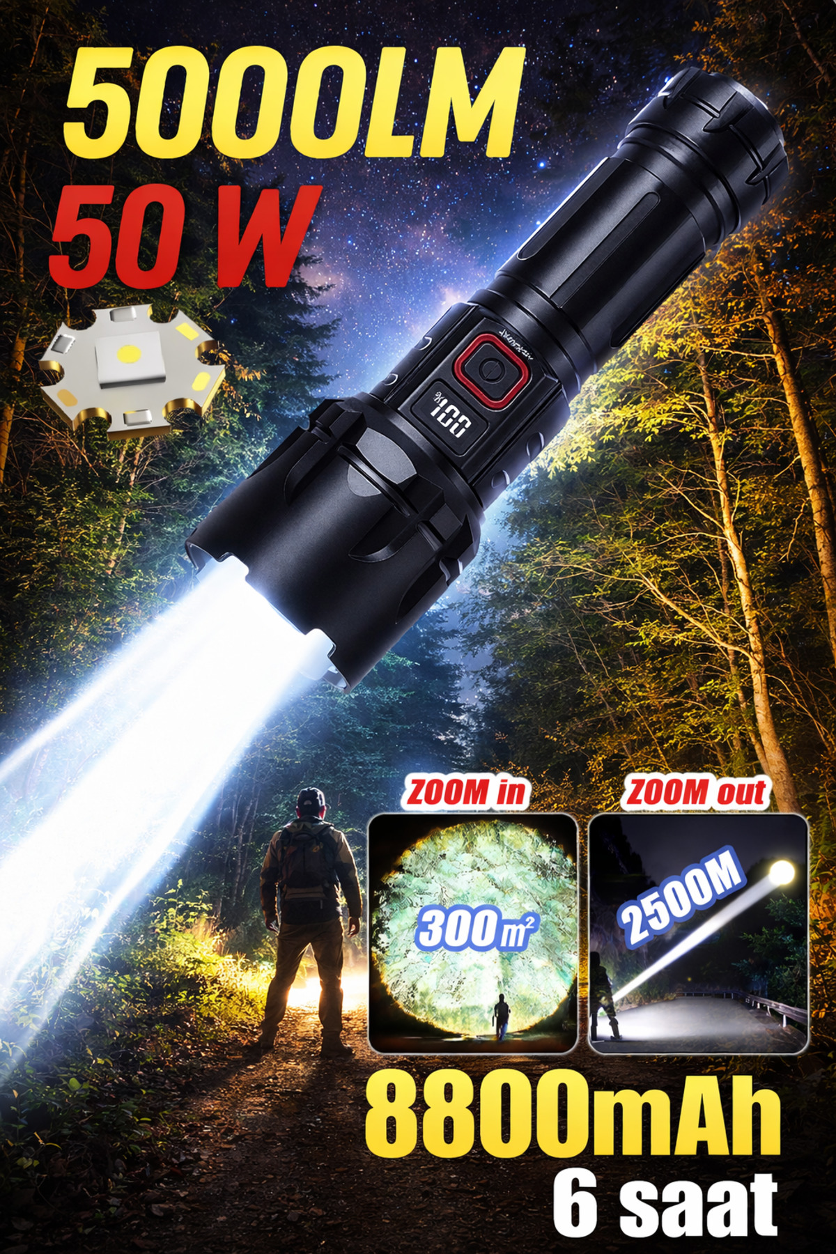 SMALL SUN 50W 5000 Lumens 26800 Model 8800 mAh battery 1.5 with 2 Km Range 10 hours working time