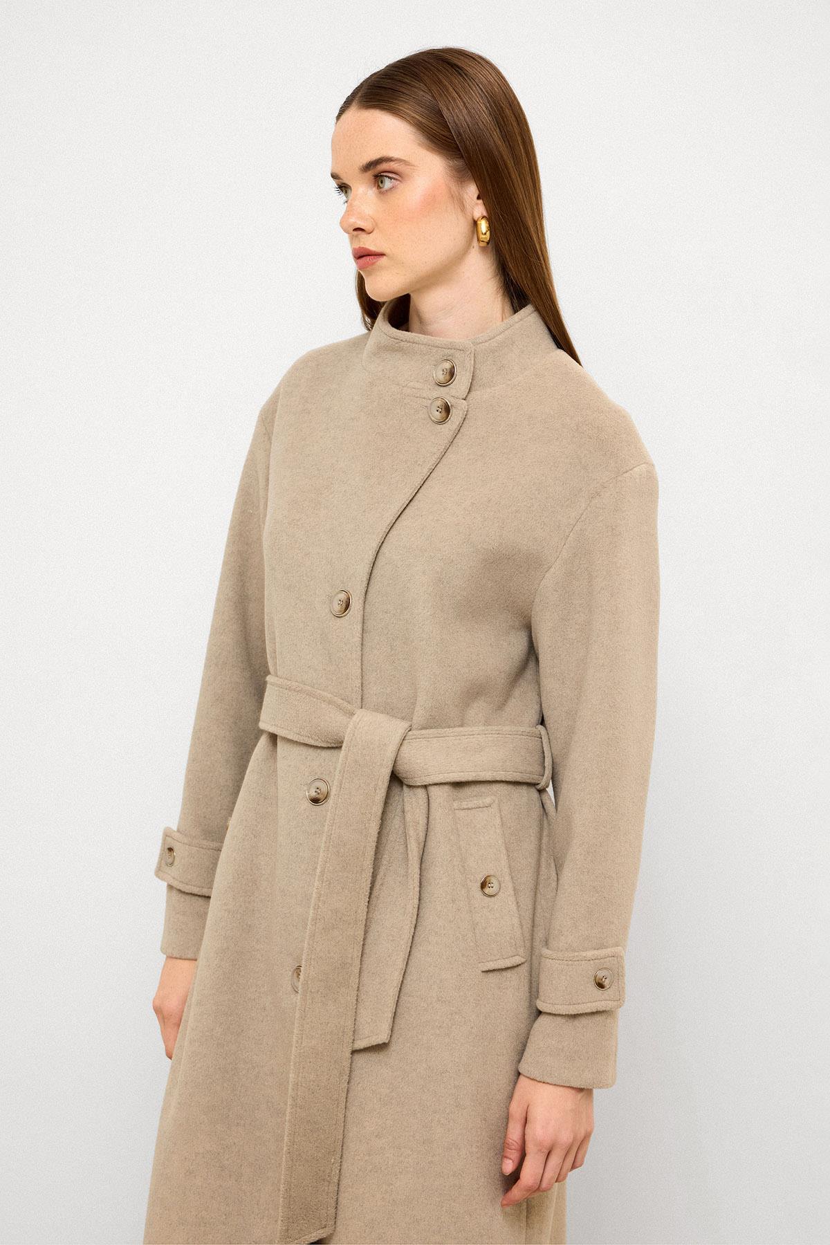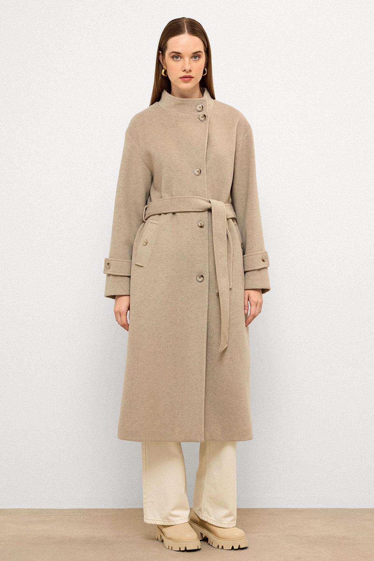Olcay Upright Collar Oversized Long Coat STONE MELANGE 3124 | ByTR