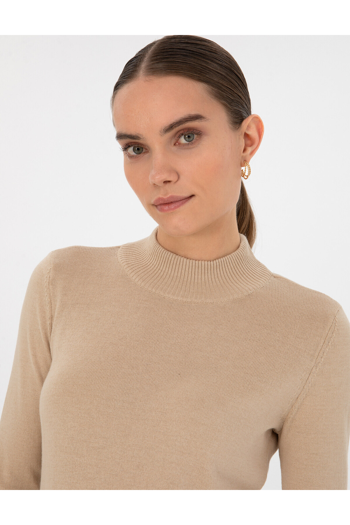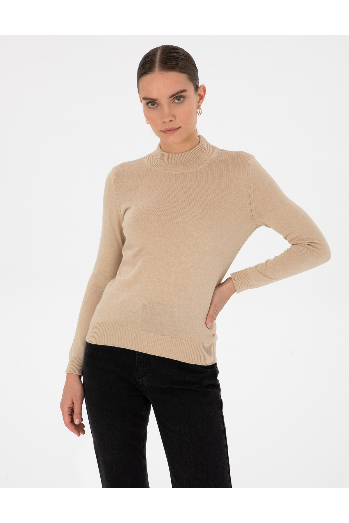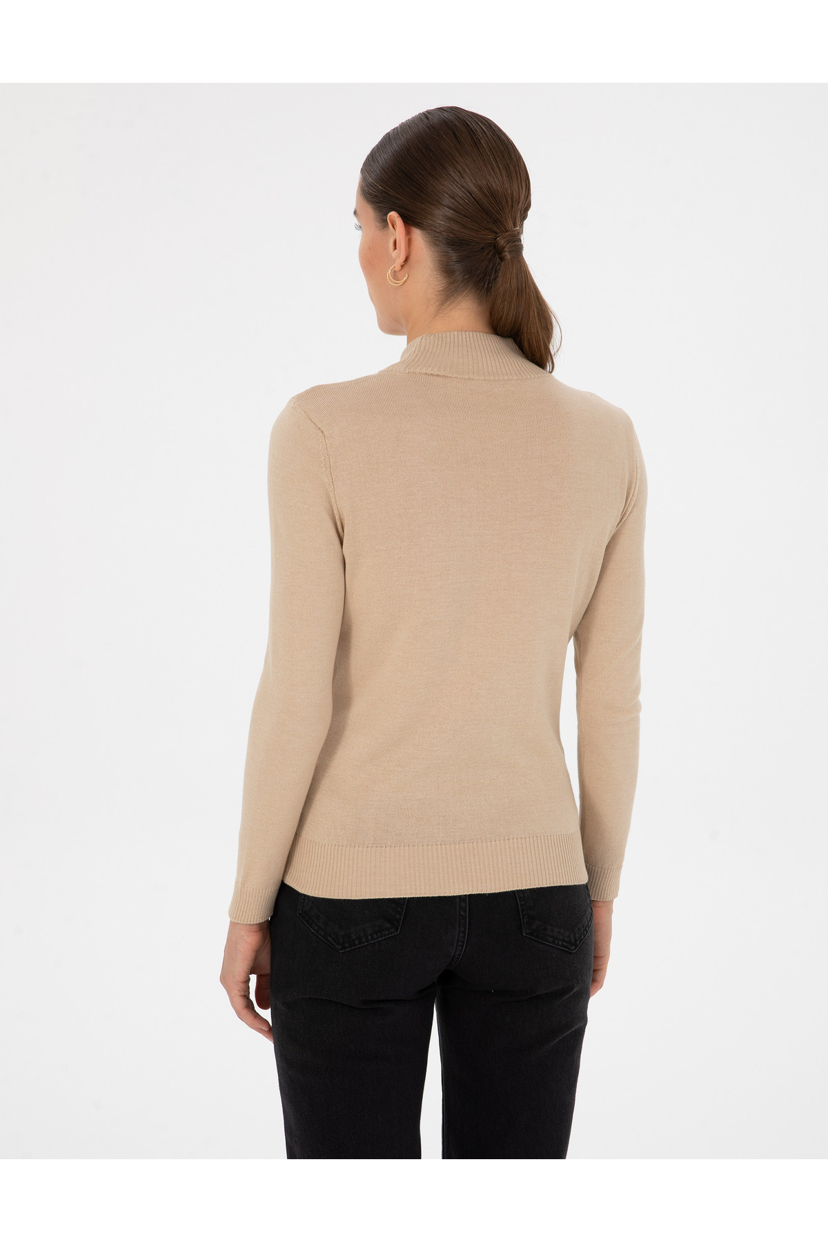 Beige Slim Fit Half Fishing Basic Sweater 50315768-VR011