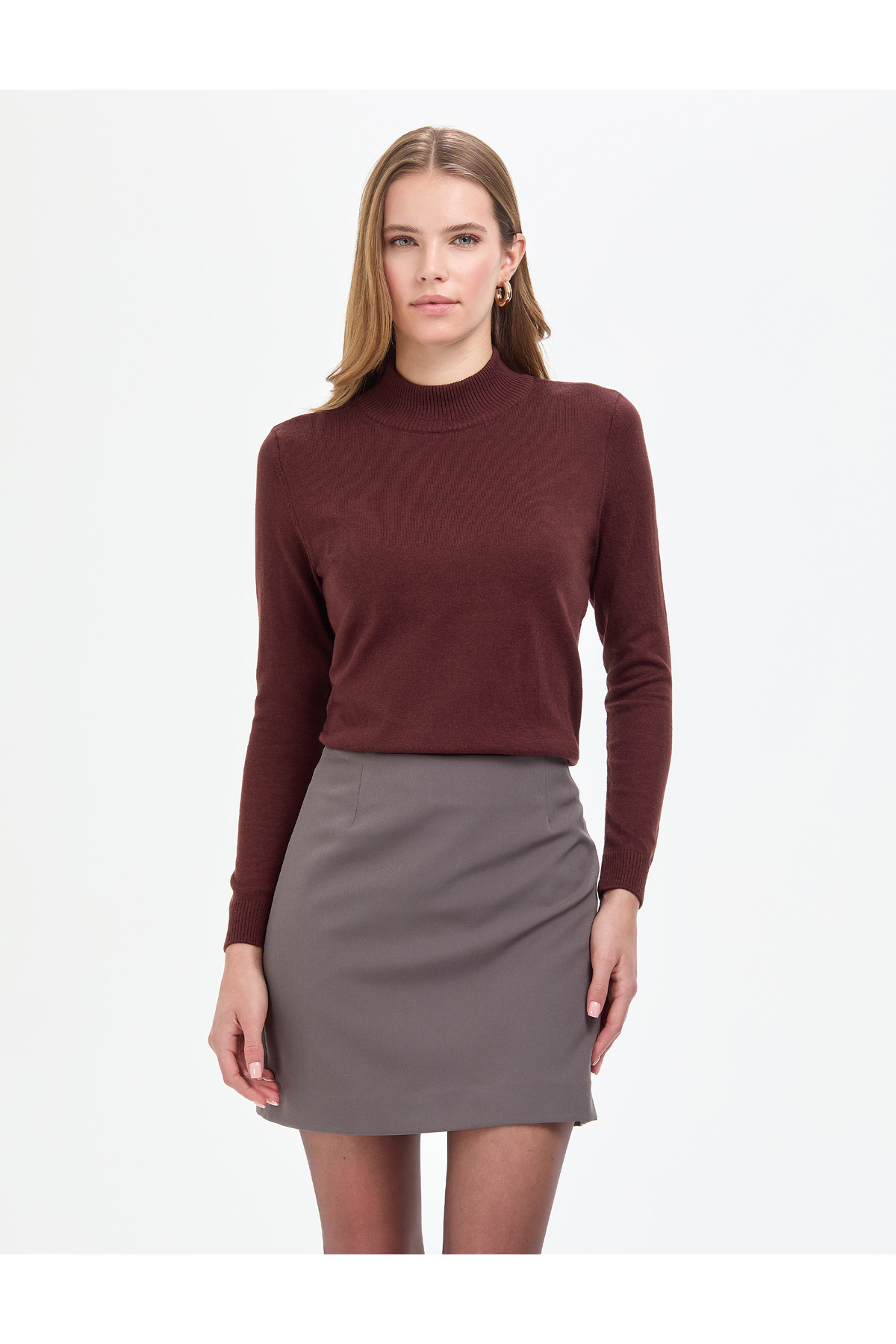 Brown Slim Fit Half Turtleneck Basic Sweater 50315768-VR029